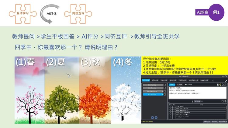 1.教師提問 > 2.學(xué)生平板回答 > 3.AI評(píng)分、評(píng)語 > 4.同儕互評(píng) > 5.教師引導(dǎo)全班共學(xué)