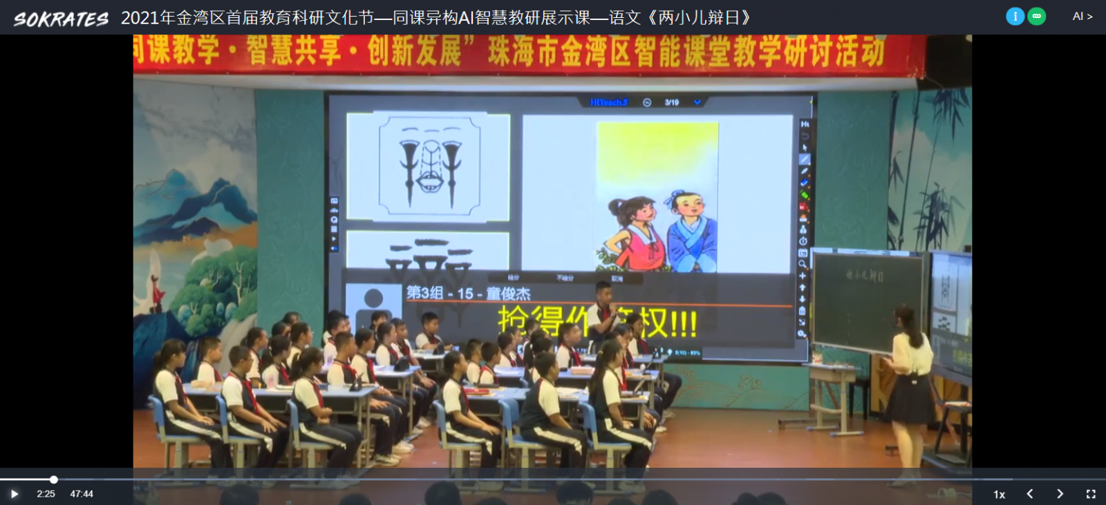 6月10日,劉姍老師在湖北荊州又進行《兩小兒辯日》第二次課例展示,語文中心組教師代表全程參與活動。這一次課例展示不僅讓劉姍老師有了展示、交流的機會,也讓學校更多老師有了學習、提升的機會。全球醍摩豆智慧教育研究院特聘專家李紅路主任對劉姍老師的課給予了高度的評價,充分肯定了劉老師豐富的教學經(jīng)驗,嫻熟的技術(shù)運用,以及對課堂的精準把控。劉姍老師的這堂課將智慧教育與語文課堂高度融合,既尊重了學生的個體差異,也充分挖掘了學生的高階思維能力。李專家用