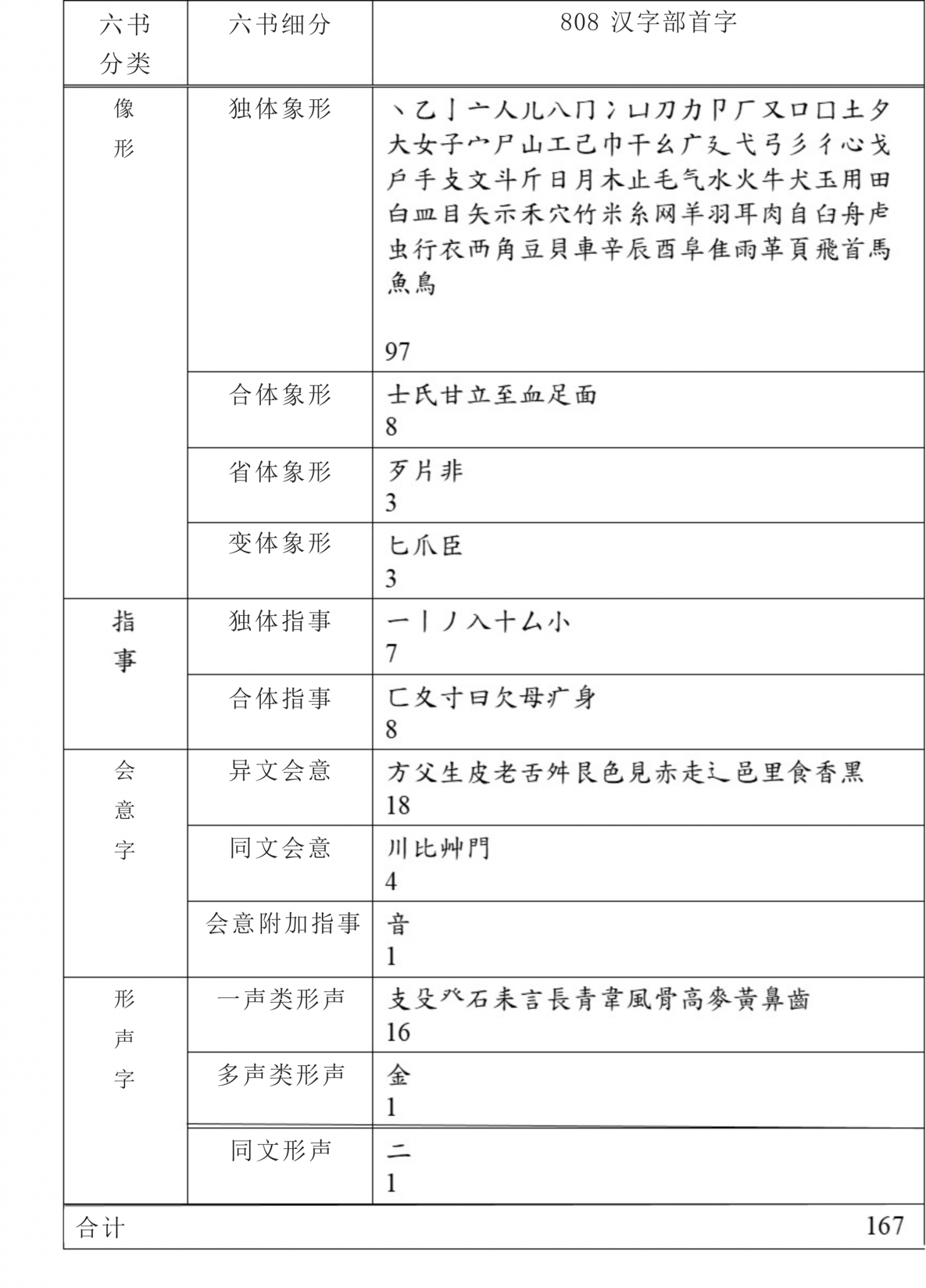 附錄1 中日韓808漢字部首六書分類表
