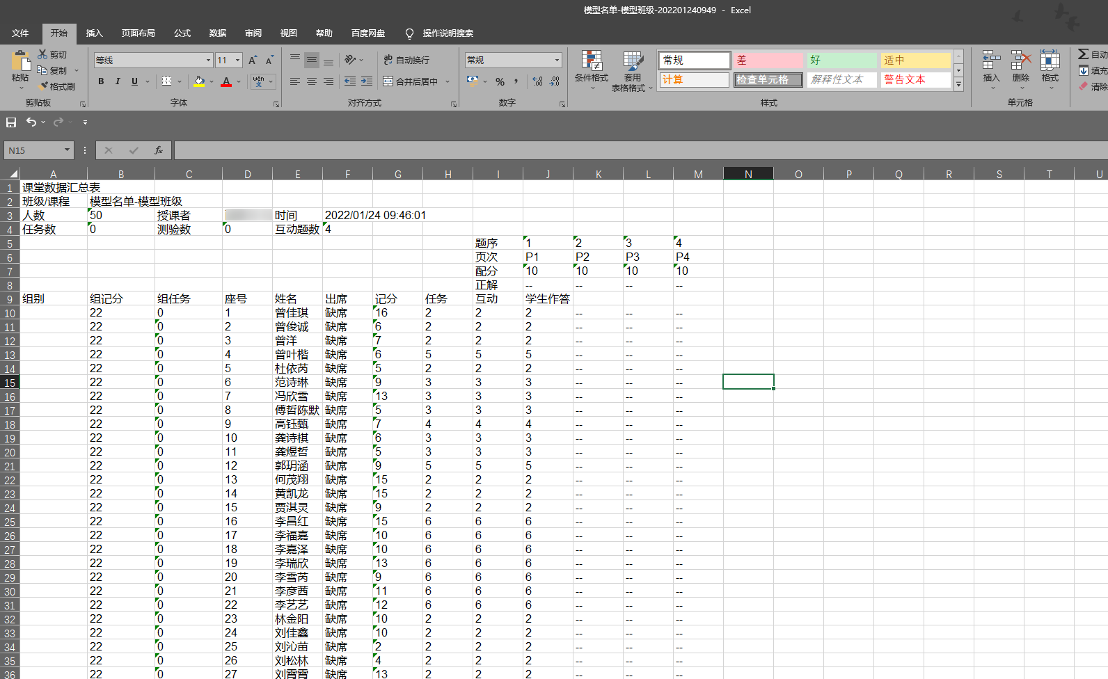 在互動(dòng)頁面會(huì)顯示每一位學(xué)生的互動(dòng)得分?jǐn)?shù)據(jù),如圖