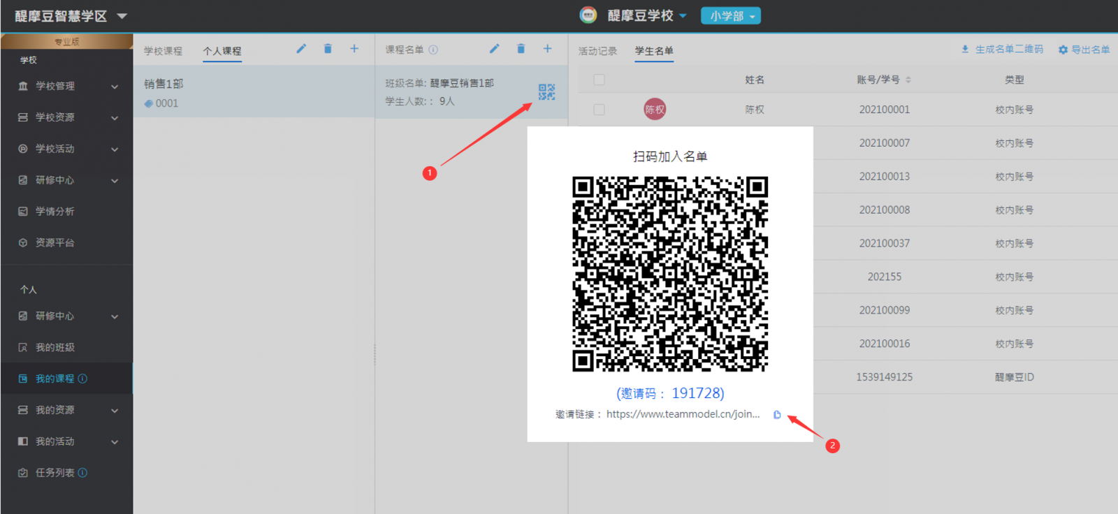 圖3:教師邀請(qǐng)學(xué)生加入個(gè)人課程