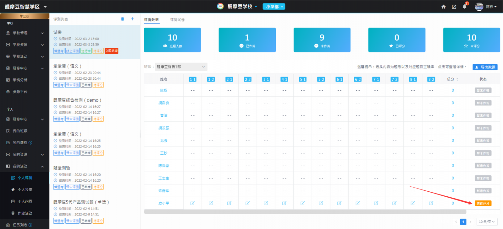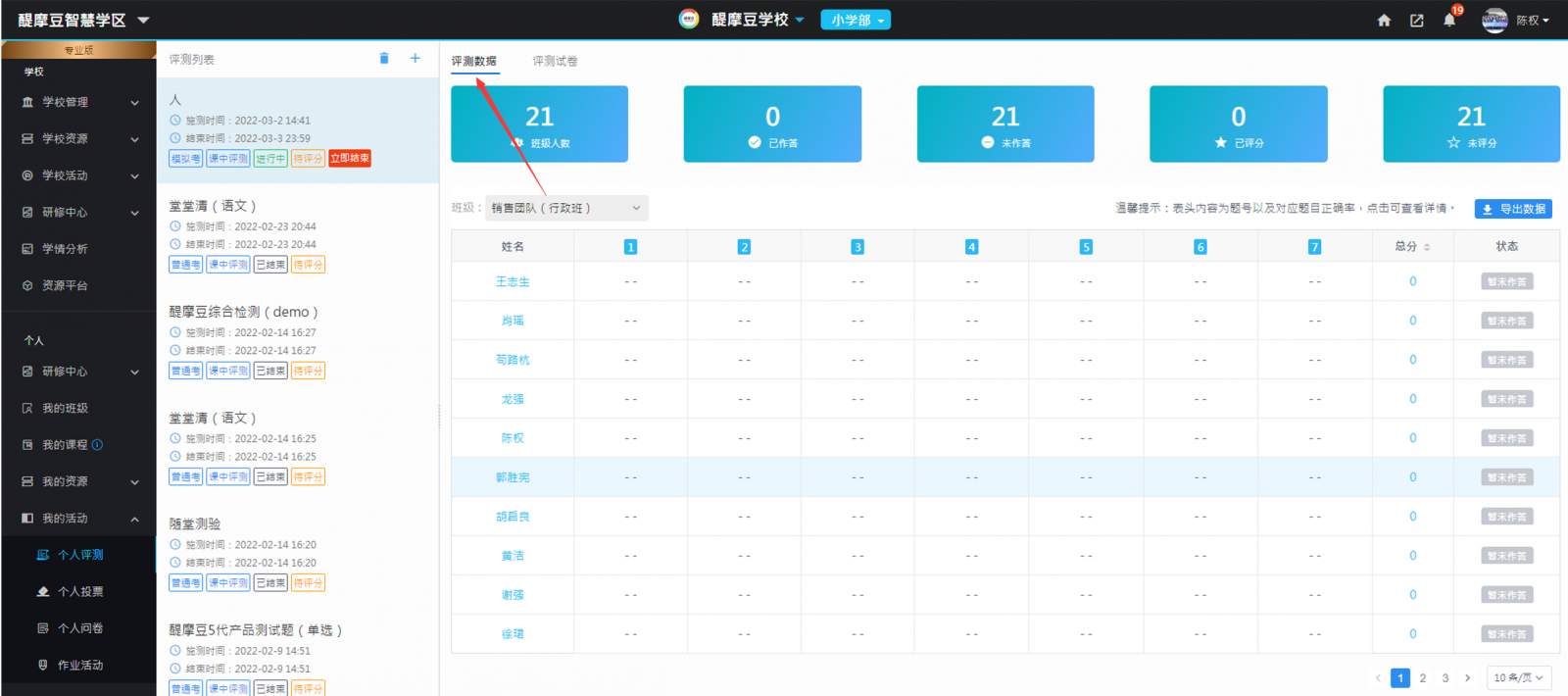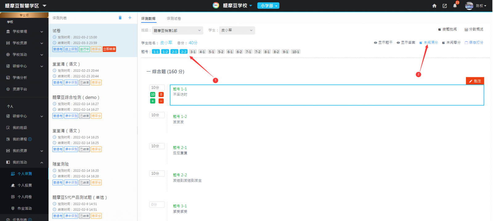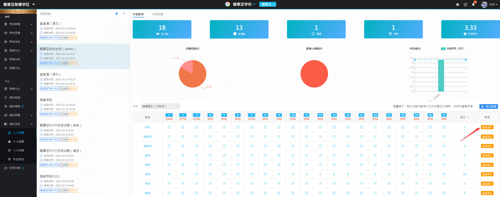 圖16:教師進(jìn)入批閱評(píng)量數(shù)據(jù)頁面