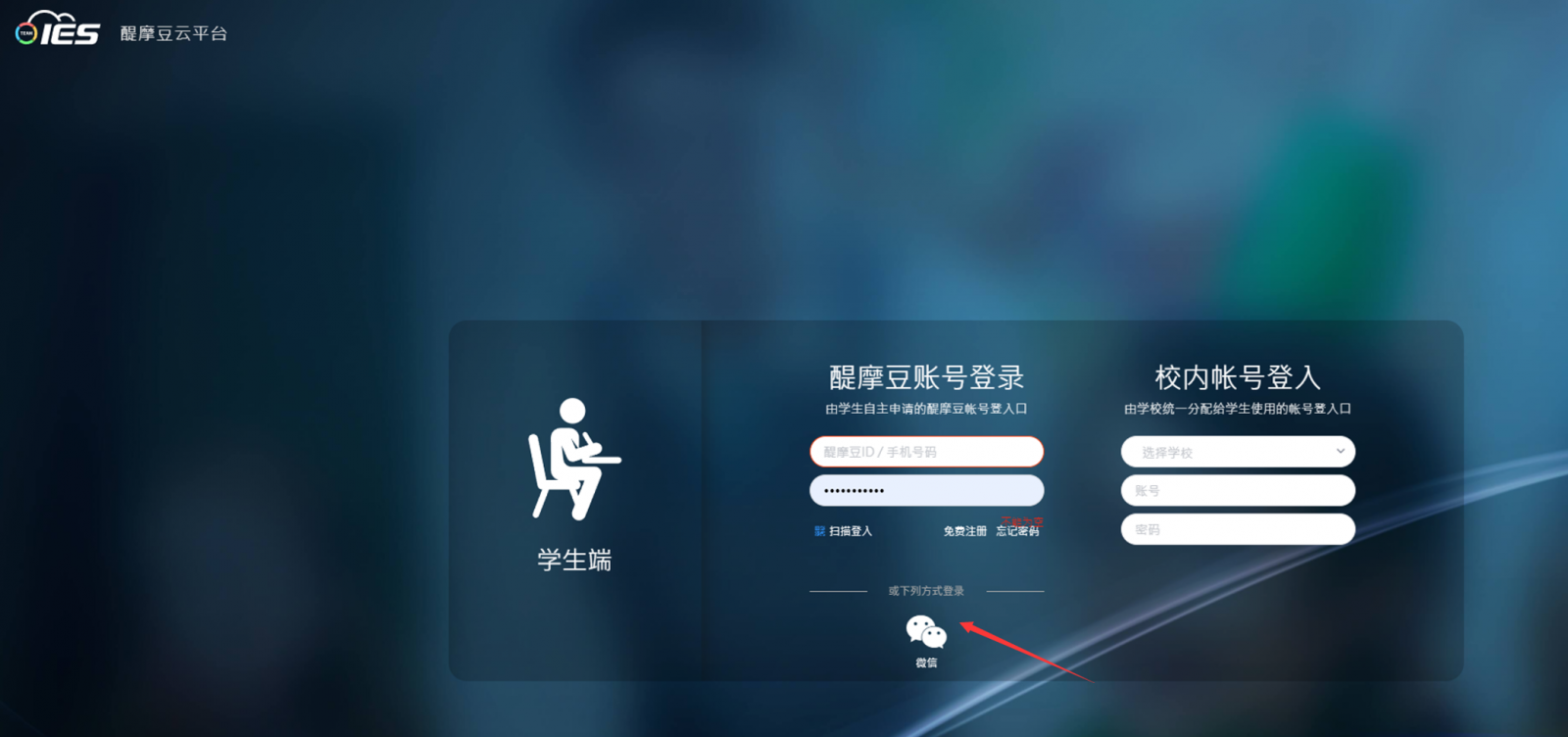 圖9:學(xué)生登入帳號(hào)密碼(或使用微信賬號(hào))