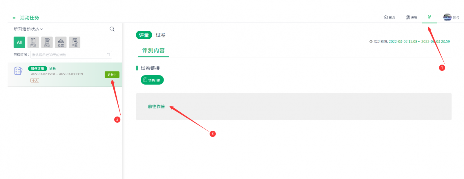 (1) 選擇左下角的我的活動(dòng)/個(gè)人評(píng)測(cè)。