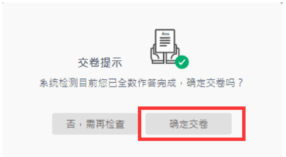 (5) 出現(xiàn)確定交卷頁面后,選擇確定交卷鈕,如圖12。