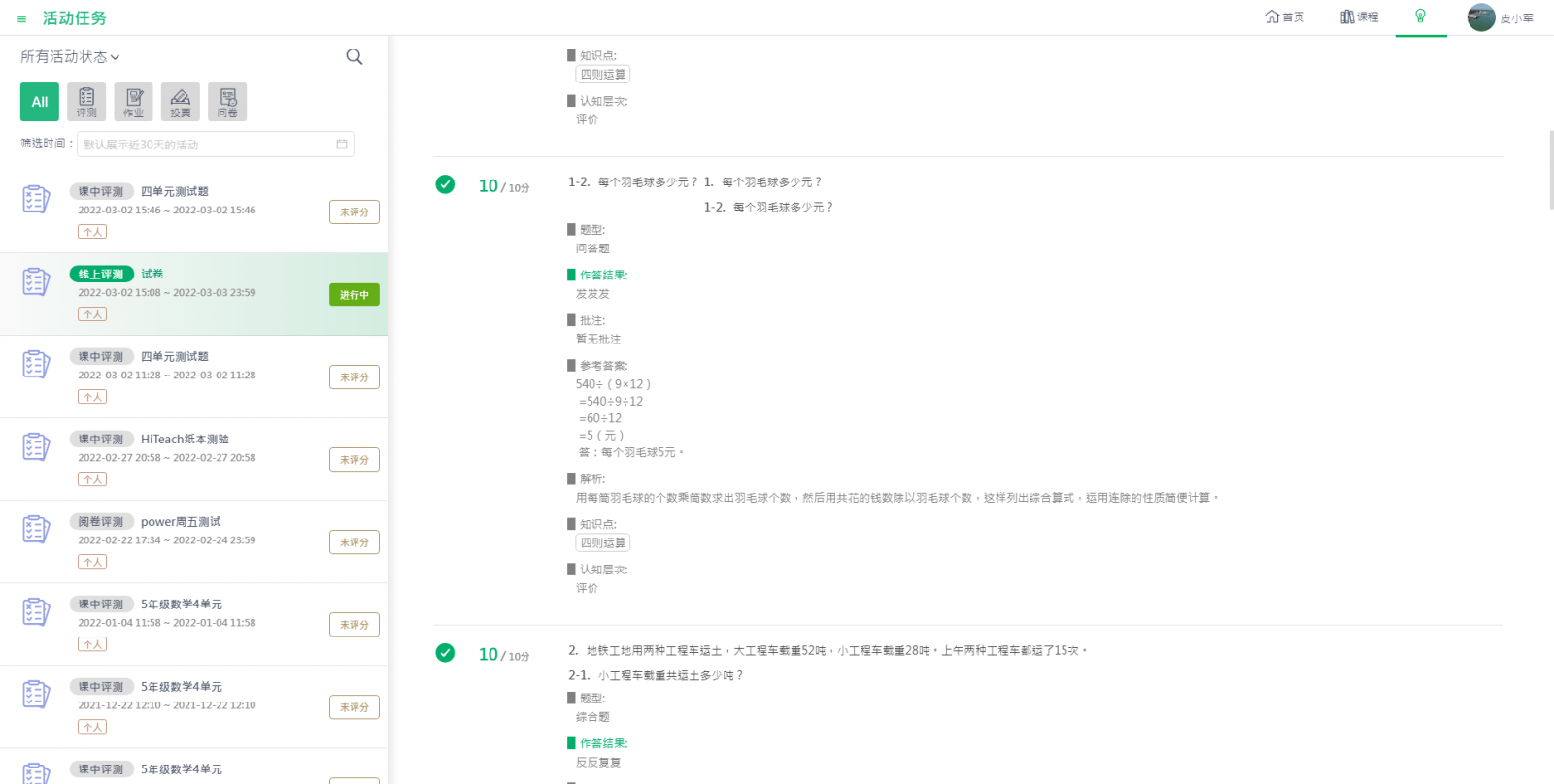 建立個(gè)人課程后,基于云平臺(tái)的學(xué)習(xí)活動(dòng)就啟航了。下面舉兩個(gè)學(xué)習(xí)評(píng)量應(yīng)用案例,來說明學(xué)習(xí)評(píng)量數(shù)字化應(yīng)用情境。