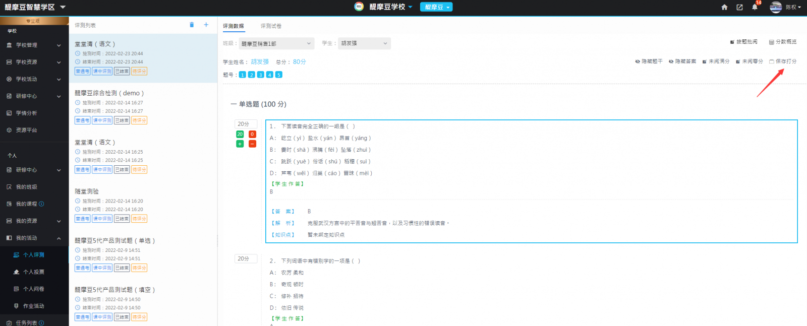 (3)完成一份試卷的給分后,選擇儲(chǔ)存打分鈕,如圖18。
