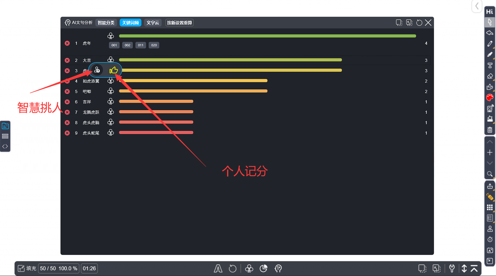 ,若不符合教師的教學(xué)策略,可以手動刪除。翻牌功能,可以顯示使用該