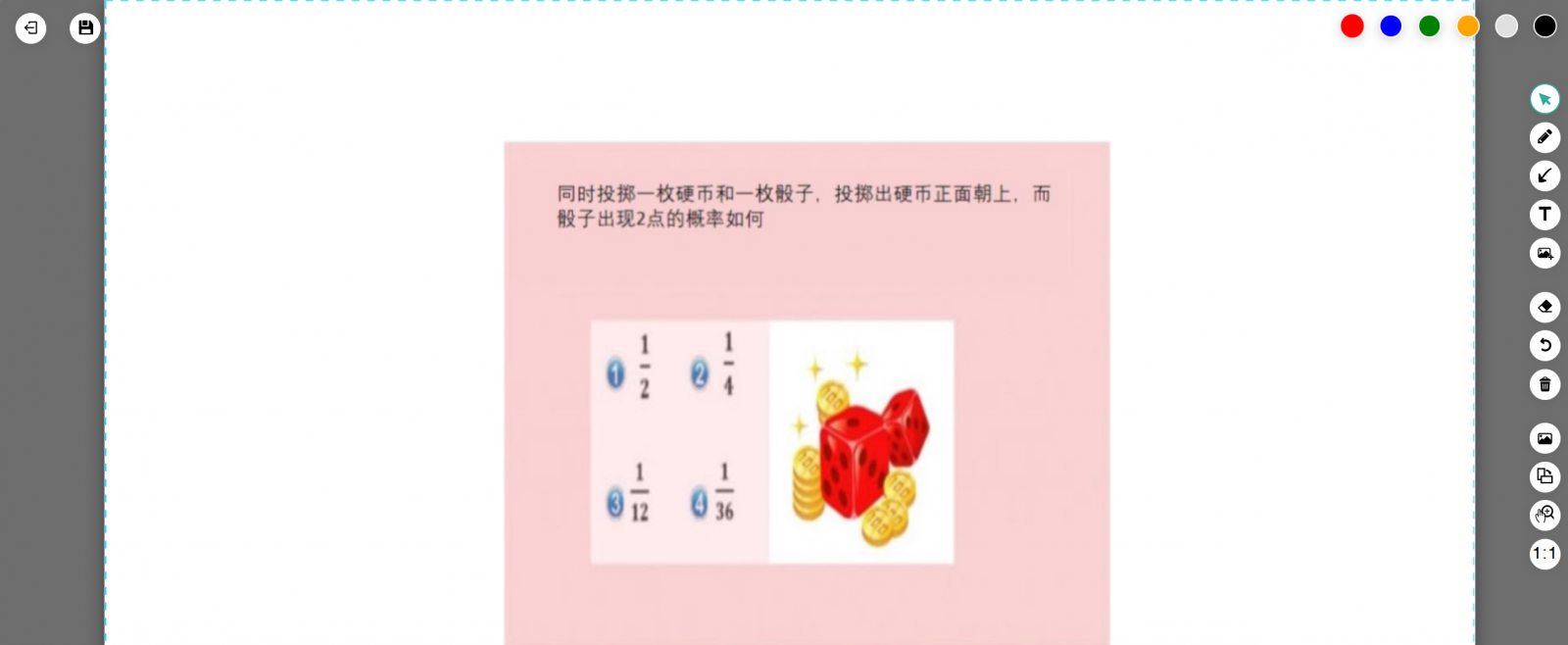 HiTeach中的所有頁(yè)面(包含物件),都可以作為差異化教材推送到學(xué)生端。若教材是PPTX格式,也可以先匯入HiTeach,轉(zhuǎn)換為頁(yè)面差異化教材。準(zhǔn)備頁(yè)面差異化教材時(shí),可以利用顏色來(lái)區(qū)分頁(yè)面的難易度或類型(如圖5),或利用HiTeach頁(yè)面顏色標(biāo)記功能設(shè)定不同的顏色。
