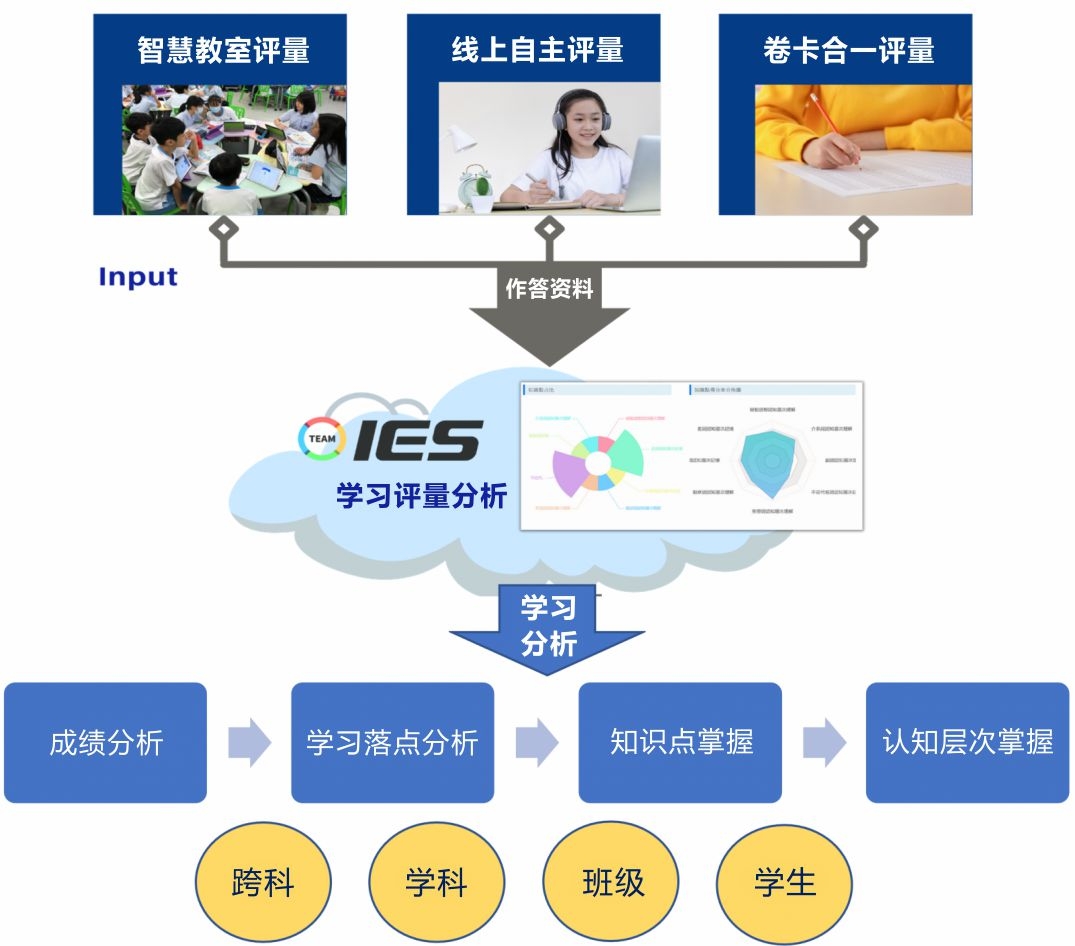 學(xué)習(xí)評量數(shù)字化可以生成大量評量數(shù)據(jù),再利用學(xué)習(xí)分析工具,包括成績分析、落點(diǎn)分析、知識點(diǎn)掌握和認(rèn)知層次掌握等工具,分別對跨科、學(xué)科、班級、學(xué)生之學(xué)習(xí)情況(學(xué)情),進(jìn)行精準(zhǔn)、高效的學(xué)習(xí)情況(學(xué)情)分析。