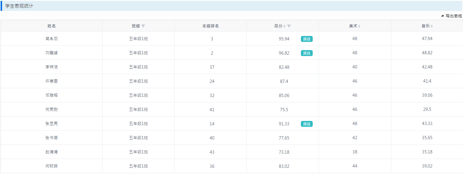 5:學(xué)生表現(xiàn)統(tǒng)計(jì)表