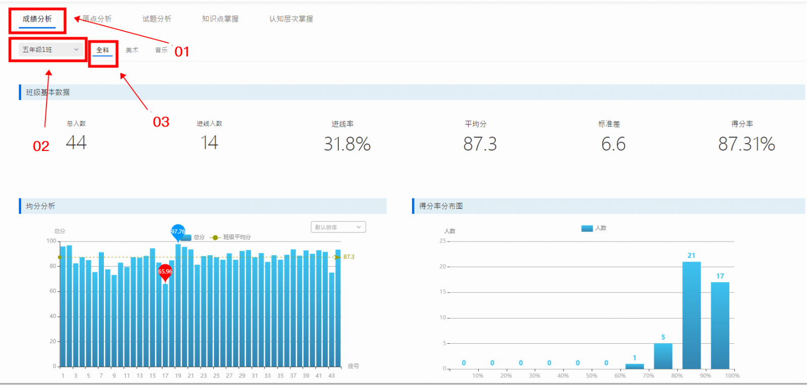 在成績分析頁面,點(diǎn)選單一班級標(biāo)簽