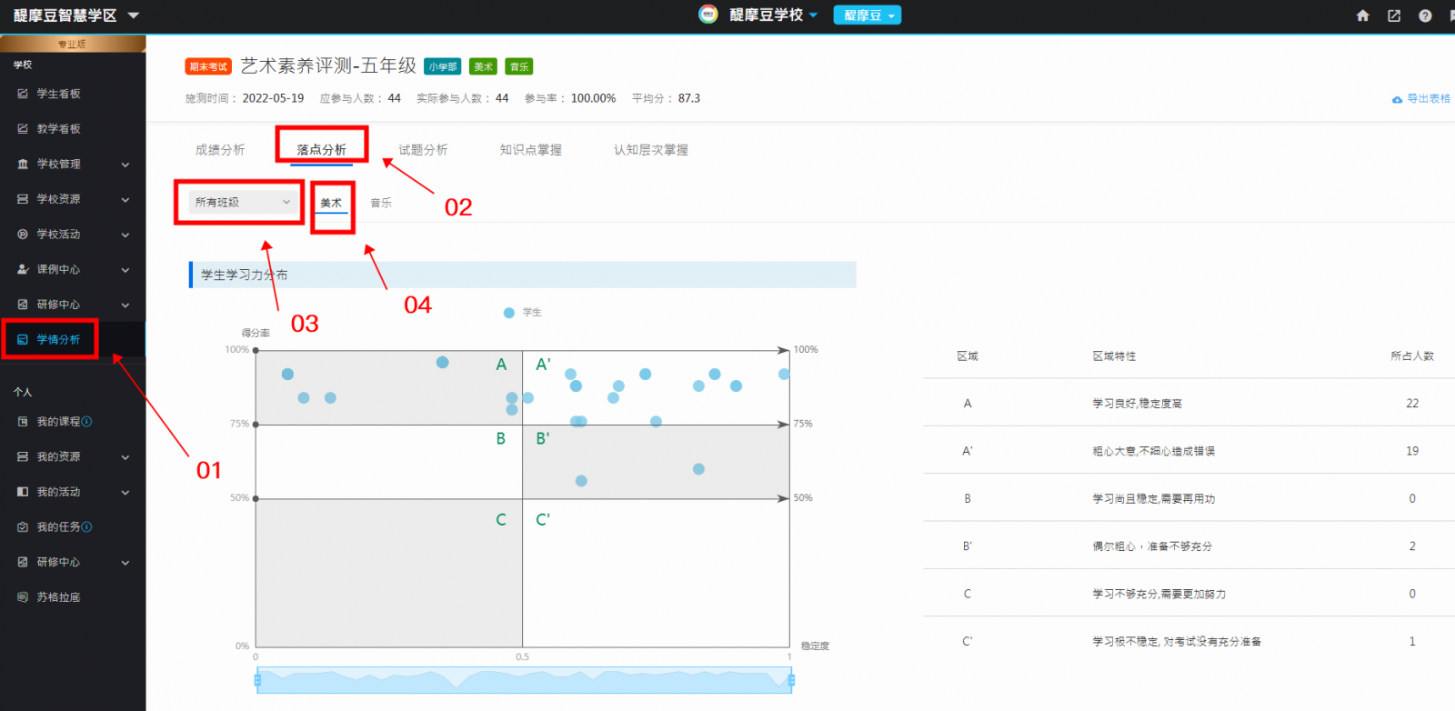 學(xué)習(xí)評量數(shù)字化,就能自動生成大量評量數(shù)據(jù),而參考上述學(xué)習(xí)分析工具的應(yīng)用舉例,就能初步掌握成績分析、落點(diǎn)分析、知識點(diǎn)掌握和認(rèn)知層次掌握等學(xué)習(xí)分析工具的應(yīng)用技巧。