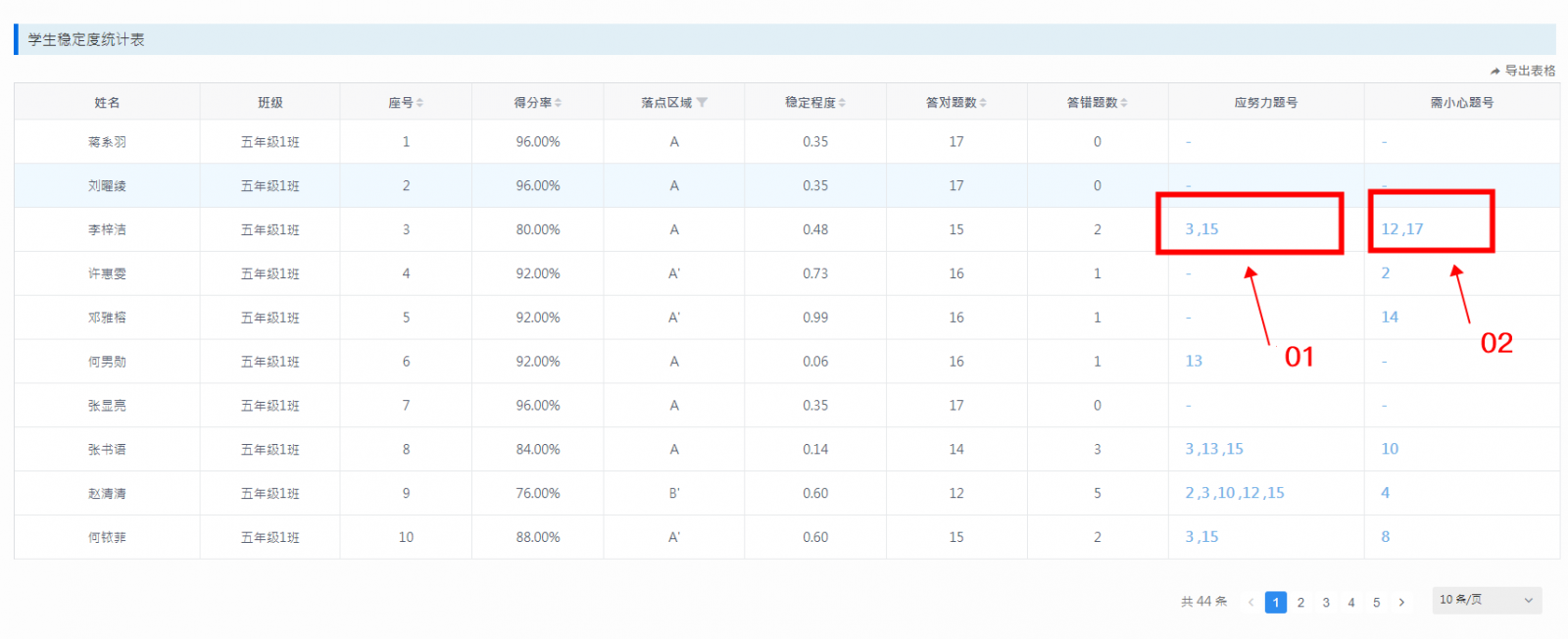 下方緊接著顯示學(xué)生穩(wěn)定度統(tǒng)計(jì)表,如圖