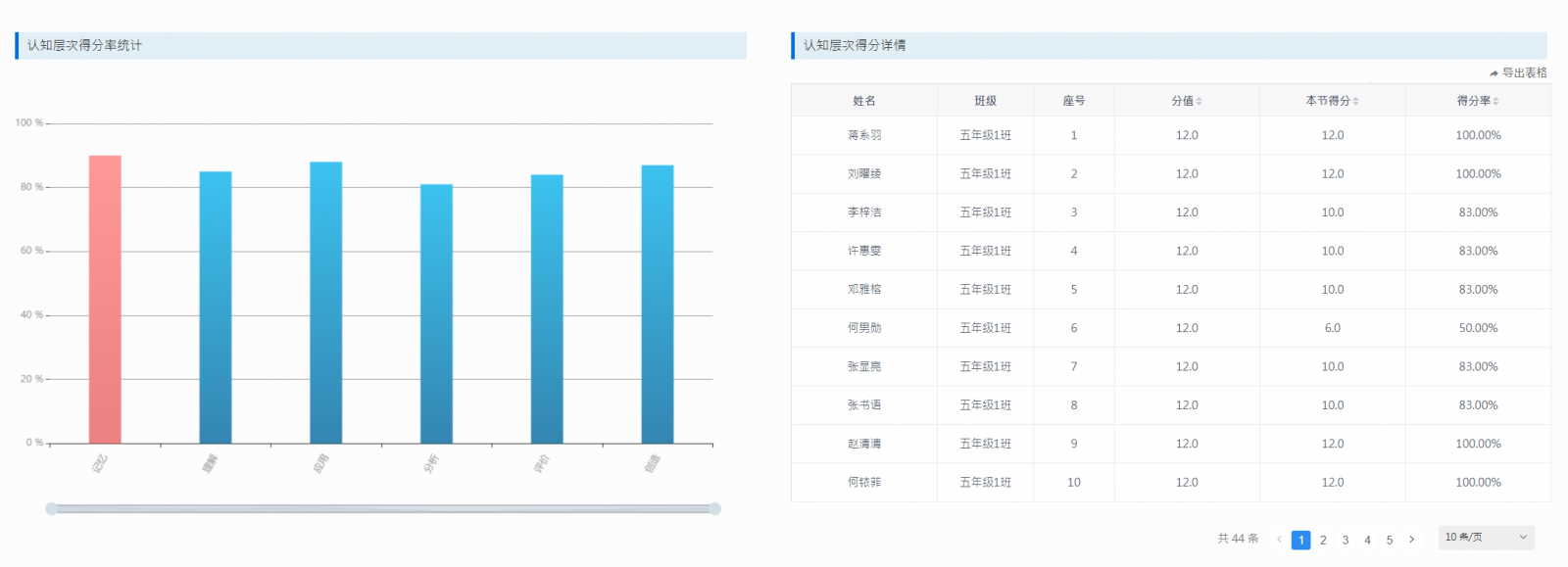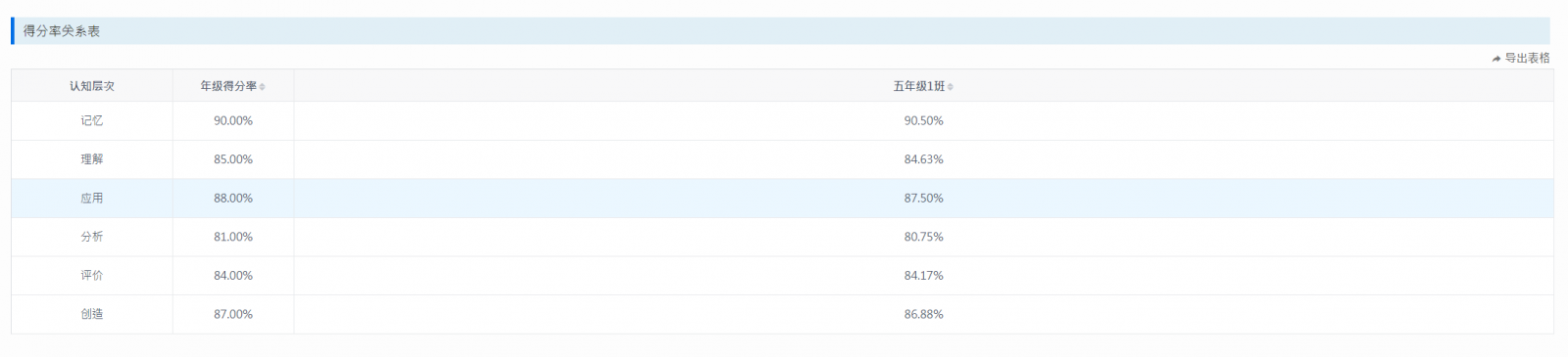 21:認(rèn)知層次得分率統(tǒng)計(jì)圖與認(rèn)知層次得分詳情表
