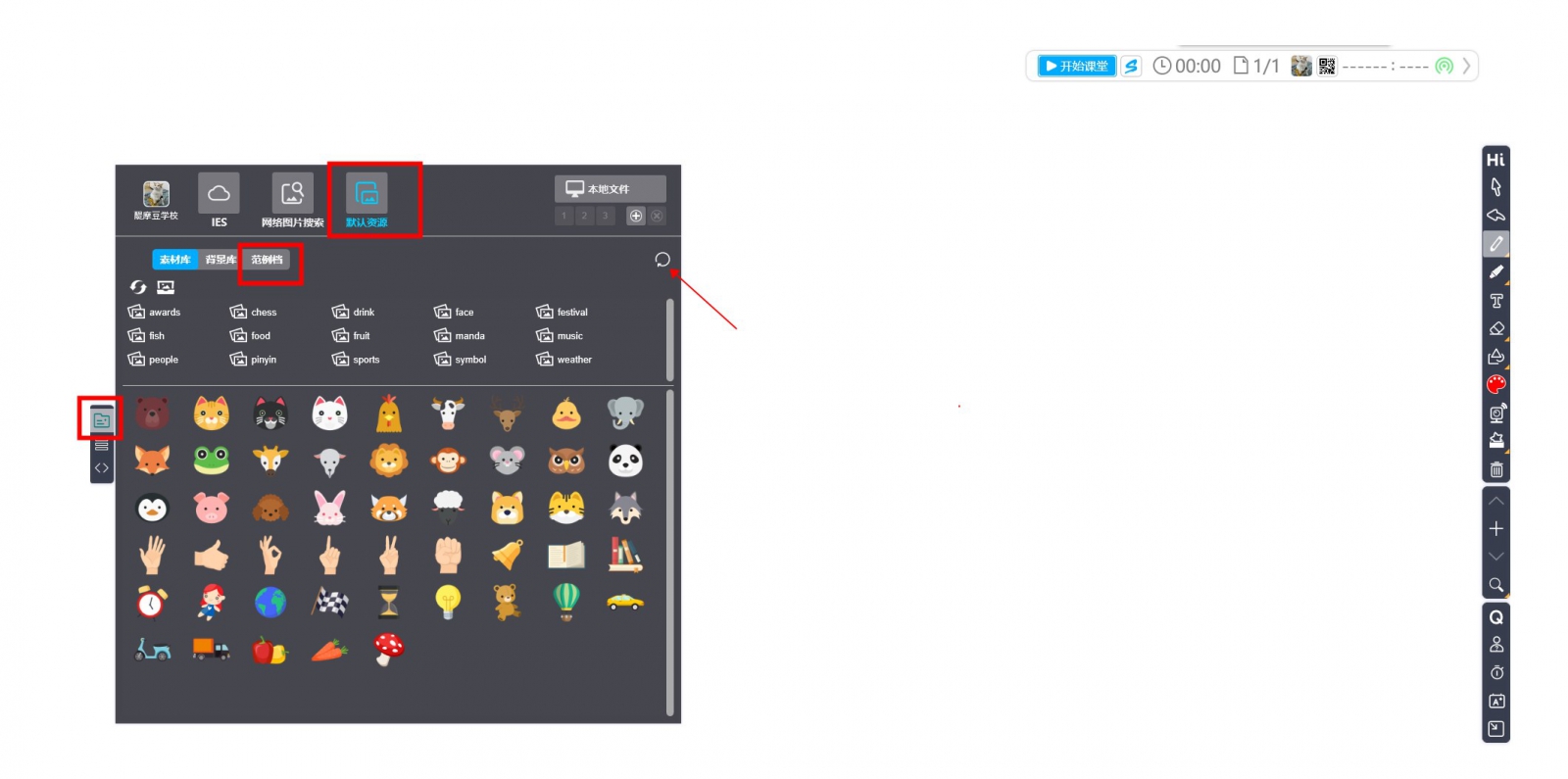 從教材資源區(qū)選擇資源鈕,然后選擇
