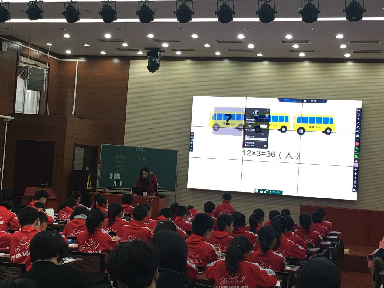 圖為培新小學(xué)秦瓊老師運(yùn)用智慧教室參加全區(qū)信息學(xué)科教研公開課活動(dòng)