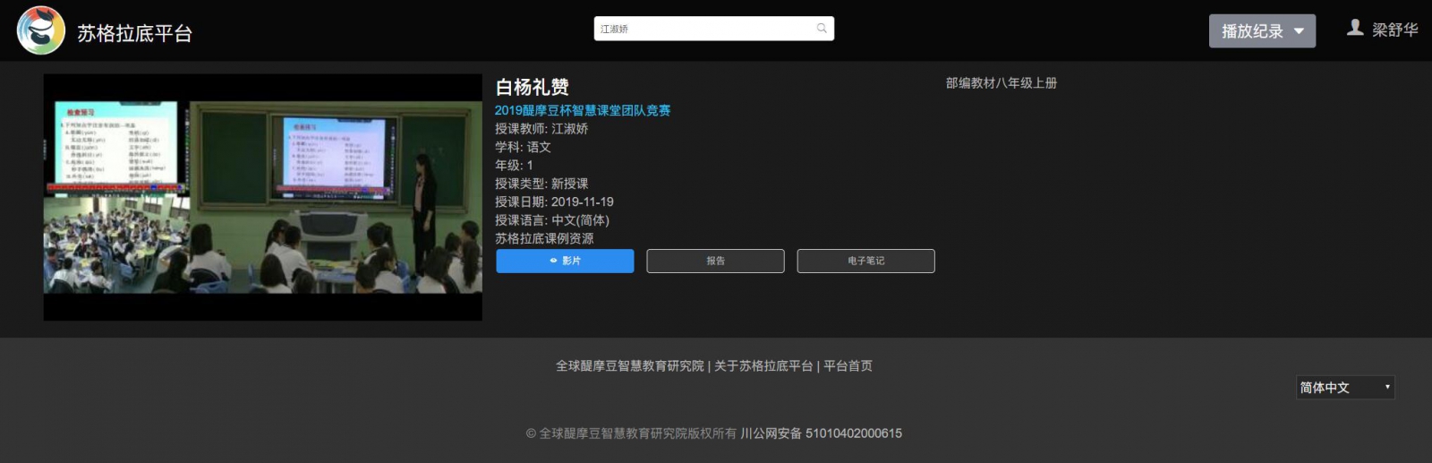 深圳市坪山區(qū)中山中學(xué)語文教師 江淑嬌老師 個(gè)人簡(jiǎn)介江淑嬌老師的語文課,教態(tài)親切自然,語言樸實(shí)無華,沒有矯揉造作,而是如流水淙淙,循循善誘,在課堂上與學(xué)生建立起一種平等、協(xié)作的關(guān)系。善于利用各種教學(xué)設(shè)施,激發(fā)學(xué)生的學(xué)習(xí)興趣。2018年開始接觸醍魔豆教學(xué)平臺(tái),并對(duì)這種教學(xué)技術(shù)產(chǎn)生了濃厚興趣,并率先在教學(xué)中使用。醍魔豆的各種功能,有趣味性,亦有實(shí)用性。希望能更好地利用醍魔豆教學(xué)系統(tǒng),更好地為語文教學(xué)服務(wù)。