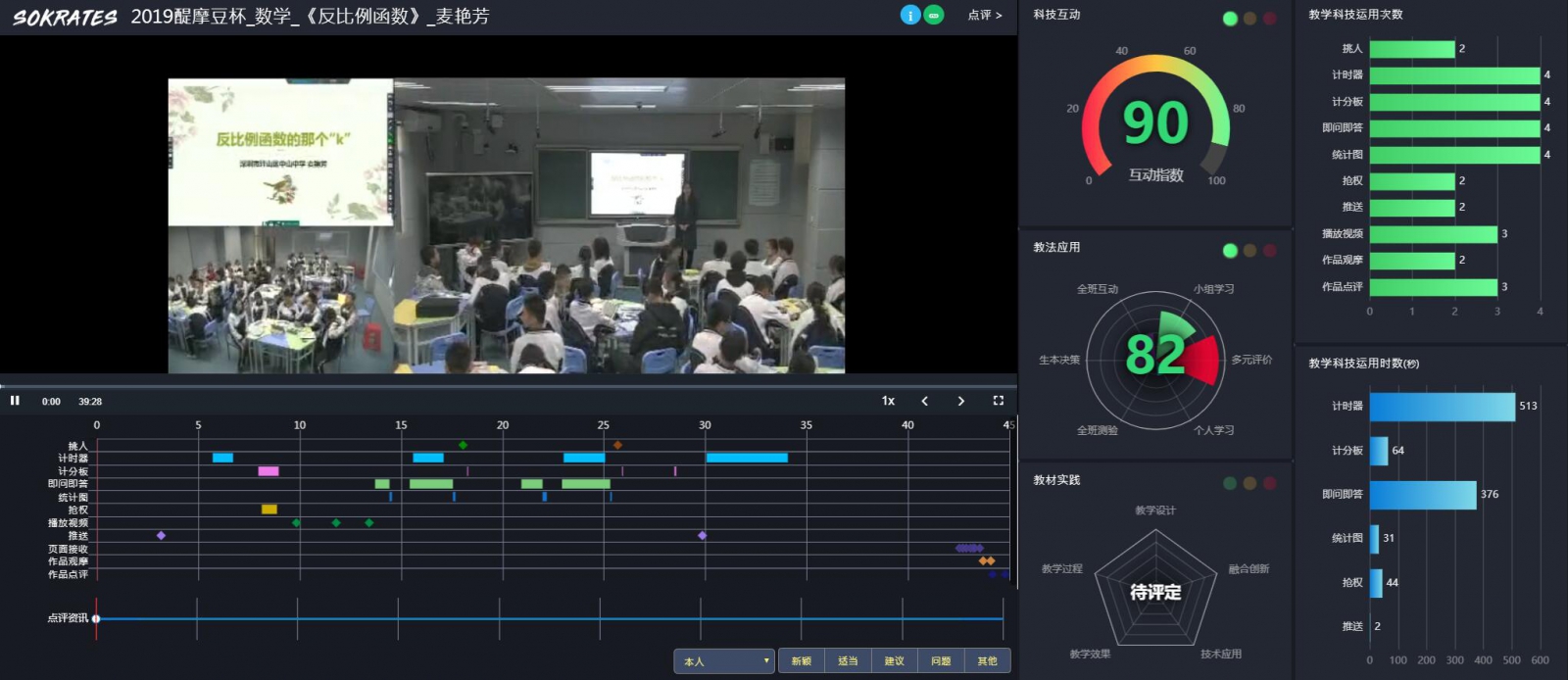 經(jīng)歷“猜想---質(zhì)疑---驗(yàn)證---應(yīng)用”,整節(jié)課教學(xué)思路清晰,信息技術(shù)和課堂內(nèi)容緊密融合,智能高效。在智慧教室支持下,實(shí)踐生本理念,加強(qiáng)關(guān)注每一位學(xué)生的學(xué)習(xí)動(dòng)機(jī)與學(xué)習(xí)成效。并采用TBL團(tuán)隊(duì)合作學(xué)習(xí)模式,進(jìn)行異質(zhì)分組,促進(jìn)個(gè)人思考、小組合作。麥老師本節(jié)課以設(shè)問和微課為導(dǎo),讓學(xué)生更加直觀得感受反比例函數(shù)中k的幾何意義,借助具體的生活問題,把抽象的數(shù)學(xué)本質(zhì)展示出來。教學(xué)過程中,通過IRS反饋器、平板,給與學(xué)生更多搶權(quán)、作品分享和小組交流等教學(xué)活動(dòng)。整節(jié)課層層遞進(jìn),在信息技術(shù)的支持下教學(xué)課堂更加緊湊,學(xué)生參與度極高。