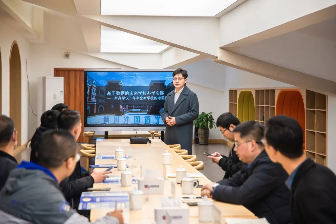 初中部陳旭校長向參訪團介紹了醍摩豆智慧教育在新川的建設及使用情況。