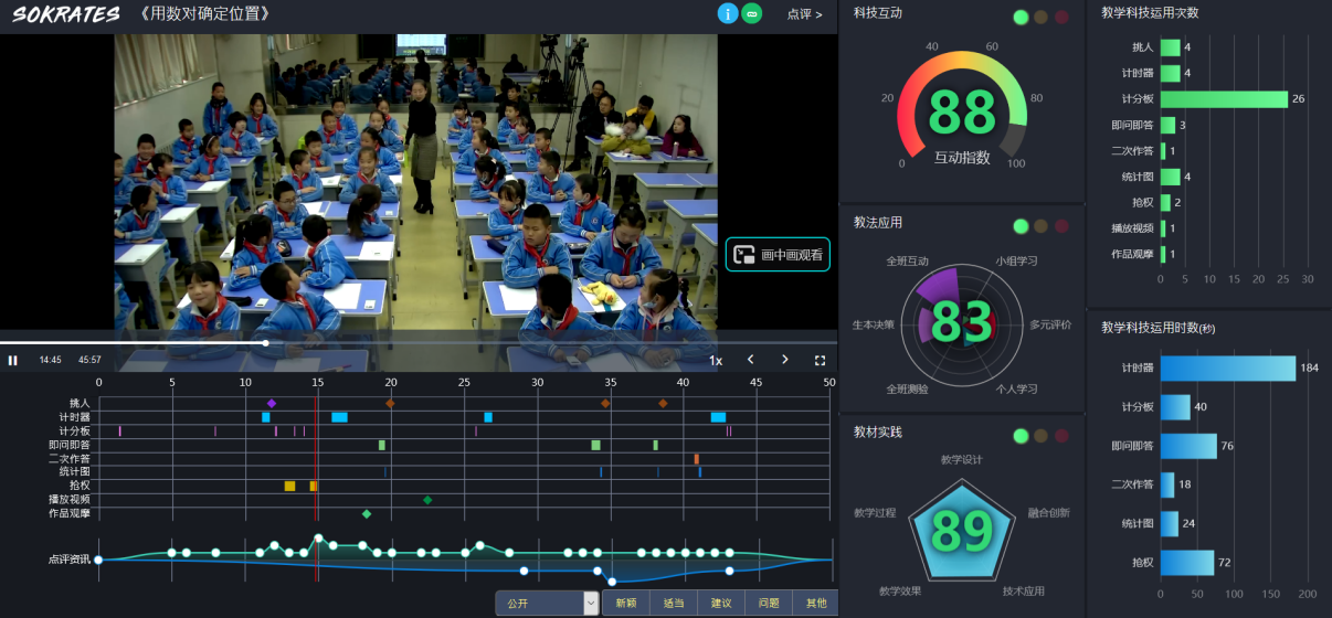 《用數對確定位置》一課,將數學知識與生活情境緊密地聯系起來。在學生已有的知識基礎和生活經驗基礎上,先讓學生說一說自己或好朋友在教室里的位置,學生表示位置的方法各異,產生分歧后再統一方法和規(guī)則,明確列與行的含義及確定第幾列、第幾行的規(guī)則,初步掌握確定位置的方法。然后引導學生自主發(fā)揮,創(chuàng)造出更加簡便的表示位置的方法,通過觀察對比,結合微視頻的學習,最終提取出了用數對確定位置的方法。這節(jié)課借助醍摩豆智慧課堂,激發(fā)學生的學習興趣,通過數據反饋,精準地掌握學情并及時調整策略。通過作品展示與對比分析,使學生思維可視,讓學生在思維碰撞中構建新知,將學生的求知目標引入到一個更深、更廣、更富有挑戰(zhàn)性的空間領域。