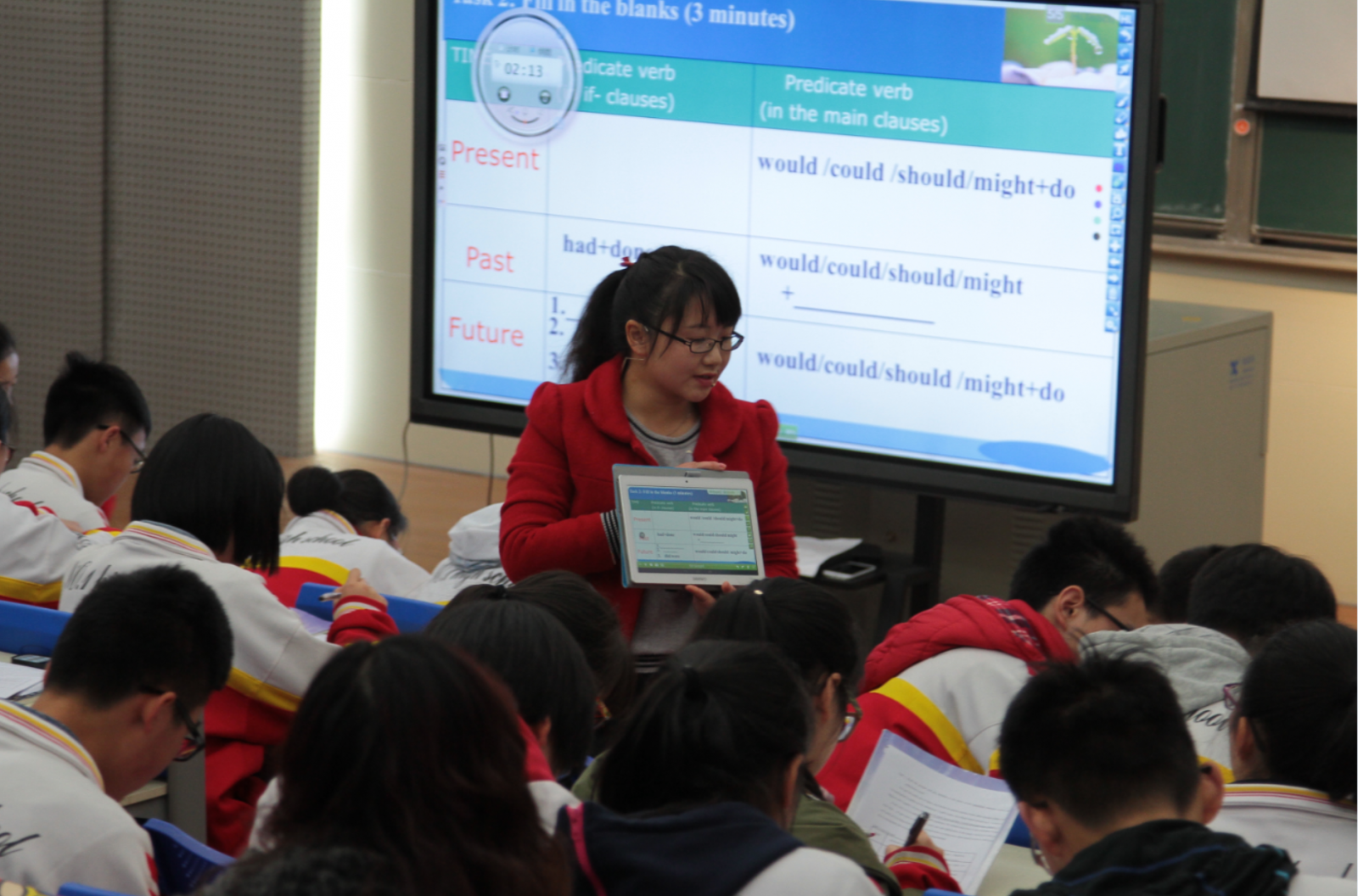 根據(jù)前測的分析報表情況,布置相關(guān)的課下學(xué)習(xí)任務(wù),將知識點掌握較差的學(xué)生與該知識點掌握較好的學(xué)生進(jìn)行組合分組,各組領(lǐng)取不同的任務(wù),利用“優(yōu)帶弱”的方式,進(jìn)行學(xué)習(xí)補(bǔ)救。上課的前半段進(jìn)行課堂翻轉(zhuǎn),先進(jìn)行各小組的學(xué)習(xí)匯報,各小組針對自己分配到的問題所歸納出的解答技巧以及關(guān)于此種知識點題目類型向全班同學(xué)展示匯報,教師再根據(jù)每組匯報情況完善知識點的講解和對應(yīng)的復(fù)習(xí)策略,完全解決本知識塊學(xué)生會遇到的問題,從而促進(jìn)全班學(xué)生“共生”學(xué)習(xí)。