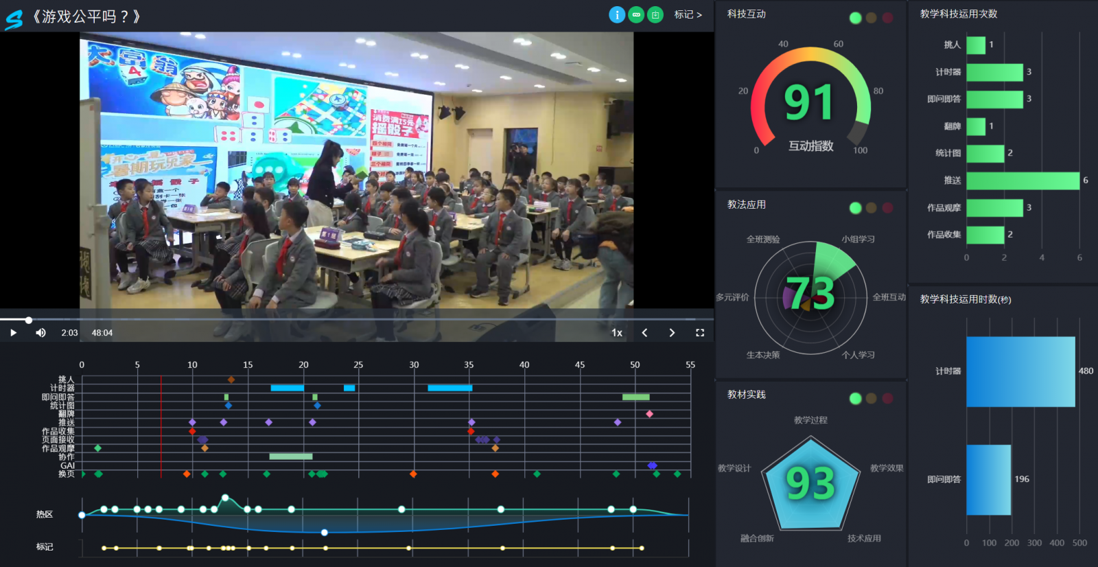 通過操作活動,運用數(shù)的組成和統(tǒng)計、可能性等有關(guān)知識,列舉事件發(fā)生的所有可能性,并探討發(fā)生可能性的大小,從而體驗事件的確定性和不確定性。在授課過程中,善用HiTeach 5智慧教學系統(tǒng)的即問即答、計分板、作品觀摩等工具,通過小組協(xié)作與GAI心智圖的巧妙結(jié)合,為參會嘉賓呈現(xiàn)了一堂充滿活力、人機協(xié)同的精彩課堂。