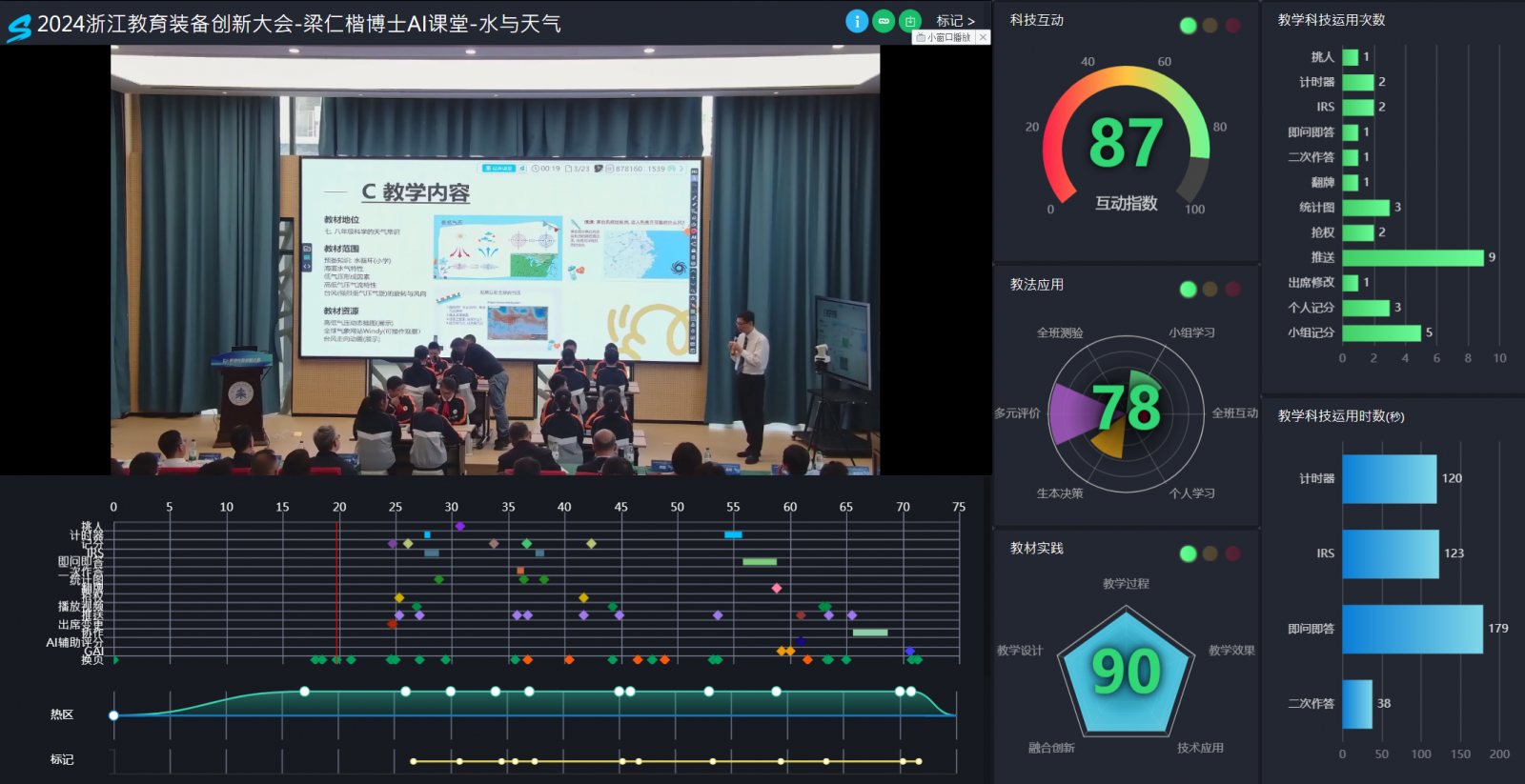 兩岸智慧好課堂邀請(qǐng)賽冠軍導(dǎo)師梁仁楷博士帶來(lái)AI課堂展示:七年級(jí)科學(xué)《水與天氣》,梁老師熟練運(yùn)用帶有生成式AI技術(shù)的HiTeach智慧教學(xué)系統(tǒng),通過(guò)全班協(xié)作與GAI心智圖,即問(wèn)即答與智慧評(píng)分的巧妙結(jié)合,為參會(huì)嘉賓呈現(xiàn)了一堂充滿活力、精彩紛呈的智慧課堂。