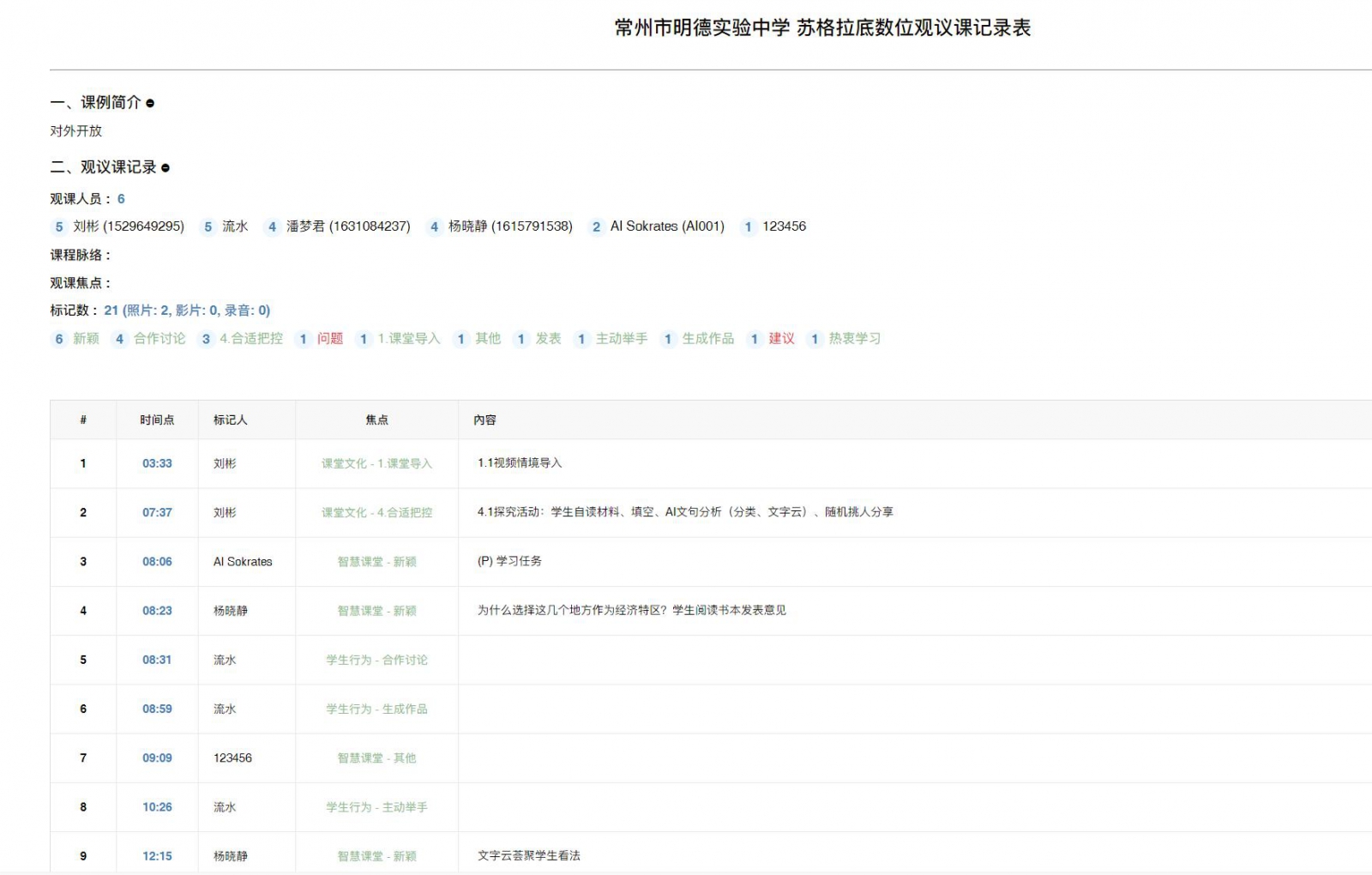 資訊(包括蘇格拉底影片、AI蘇格拉底時間軸、AI蘇格拉底課堂數(shù)據(jù)評估報告)如下: