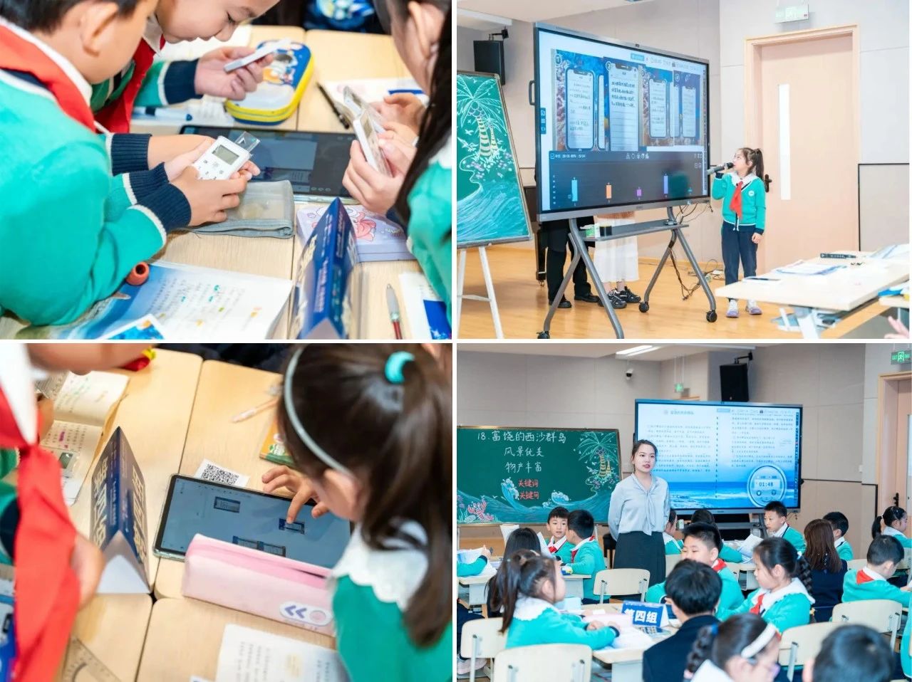 天府八小作為成都市首批人工智能+教學(xué)試點(diǎn)校,近年來(lái)始終以智慧課堂為引擎,以數(shù)智積分評(píng)價(jià)系統(tǒng)為坐標(biāo),以蘇格拉底教研平臺(tái)為支點(diǎn),深耕“人工智能+教學(xué)”全場(chǎng)景實(shí)踐,構(gòu)建“精準(zhǔn)教學(xué)、學(xué)科評(píng)價(jià)、協(xié)同教研”的智慧教育新生態(tài)。目前,天府八小擁有14間智慧教室集群,上課時(shí),學(xué)生配備一個(gè)小小的“遙控板”,就可以回答問(wèn)題,實(shí)現(xiàn)即問(wèn)即答、智慧抽問(wèn)等實(shí)時(shí)互動(dòng)。學(xué)生以隨機(jī)、同質(zhì)或異質(zhì)等方式分成小組,人手一臺(tái)平板電腦,以自學(xué)、思考、討論、發(fā)表等方式參與課堂,構(gòu)建深度互動(dòng)課堂。