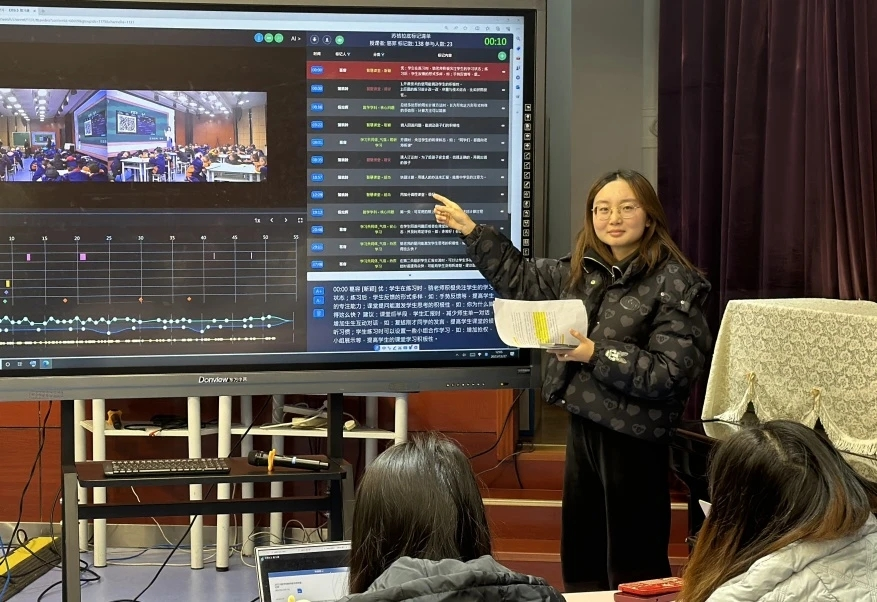 在教研中,為了更好地落實(shí)新課標(biāo)“教-學(xué)-研-評”一體化要求,學(xué)校在2023年底引入“蘇格拉底”評議課系統(tǒng)。該系統(tǒng)不僅改變了教師的教學(xué)方式和學(xué)生的學(xué)習(xí)方式,讓教學(xué)更加真實(shí)高效,還能運(yùn)用AI系統(tǒng)自動生成數(shù)據(jù)。教師可以依據(jù)這些數(shù)據(jù)直觀了解自己的課堂類型,發(fā)現(xiàn)教學(xué)過程中存在的問題,為課后反思與提升提供有力依據(jù)。教研組可根據(jù)學(xué)科特點(diǎn)設(shè)定觀課標(biāo)準(zhǔn),觀課教師通過手機(jī)即可實(shí)現(xiàn)同步研討,課后還能根據(jù)自動生成的研討數(shù)據(jù)(如碰撞點(diǎn)、聚焦問題和建議點(diǎn)等)進(jìn)行深入研磨,實(shí)現(xiàn)基于AI大數(shù)據(jù)的實(shí)證教研,促進(jìn)教師教學(xué)水平不斷提升,進(jìn)而提高教育教學(xué)質(zhì)量。此外,學(xué)校還建立了“蘇格拉底”智能資源庫,將優(yōu)秀課例向全校教師推廣(公開課例可面向全國觀課),供大家學(xué)習(xí)研究。