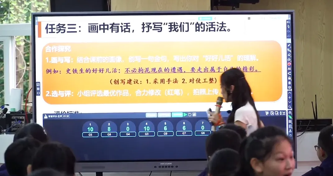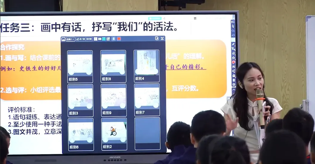 曾絲雨老師在一輪基礎(chǔ)教育課程改革中小學(xué)語文學(xué)科課程建設(shè)之特級(jí)教師走進(jìn)成都青羊研討活動(dòng)”中,進(jìn)行公開課展示,她善用HiTeach 5智慧教學(xué)系統(tǒng)的即問即答、作品觀摩、智慧互評(píng)等工具,數(shù)字賦能,帶領(lǐng)學(xué)生探究課文,領(lǐng)悟生命。