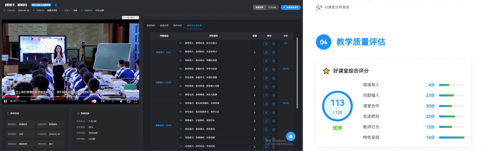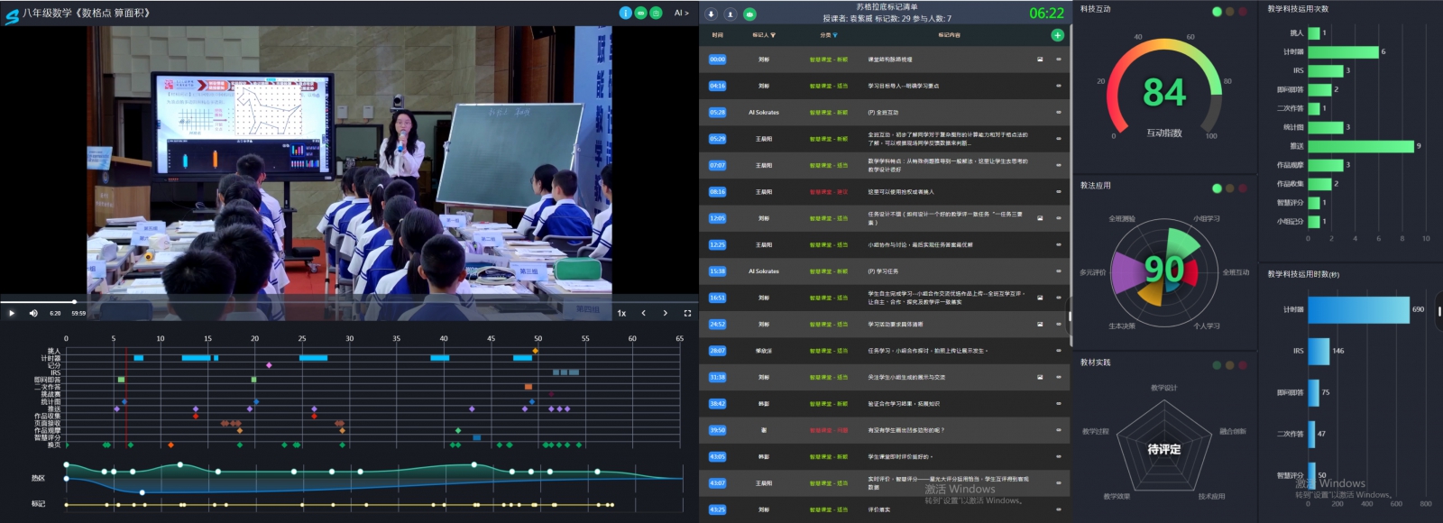 在智慧教研方面,學(xué)校構(gòu)建“問題聚焦一量表開發(fā)一課例實(shí)證”三階模型,形成閉環(huán)教研流程。開設(shè)蘇格拉底專屬課例頻道,通過智慧教研中心對(duì)教學(xué)過程進(jìn)行細(xì)致解構(gòu),雙軌采集師生的課堂行為數(shù)據(jù),精準(zhǔn)定位課堂問題,開發(fā)針對(duì)性量表,并以課例實(shí)證檢驗(yàn)教研成效,同時(shí),依托蘇格拉底平臺(tái),AI課堂分析,整合數(shù)據(jù)資源,為加速教師專業(yè)成長提供精準(zhǔn)教研支持,推動(dòng)教研模式向數(shù)據(jù)驅(qū)動(dòng)、精準(zhǔn)賦能方向轉(zhuǎn)變。