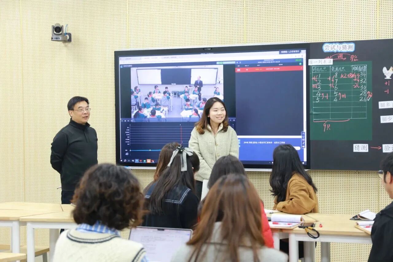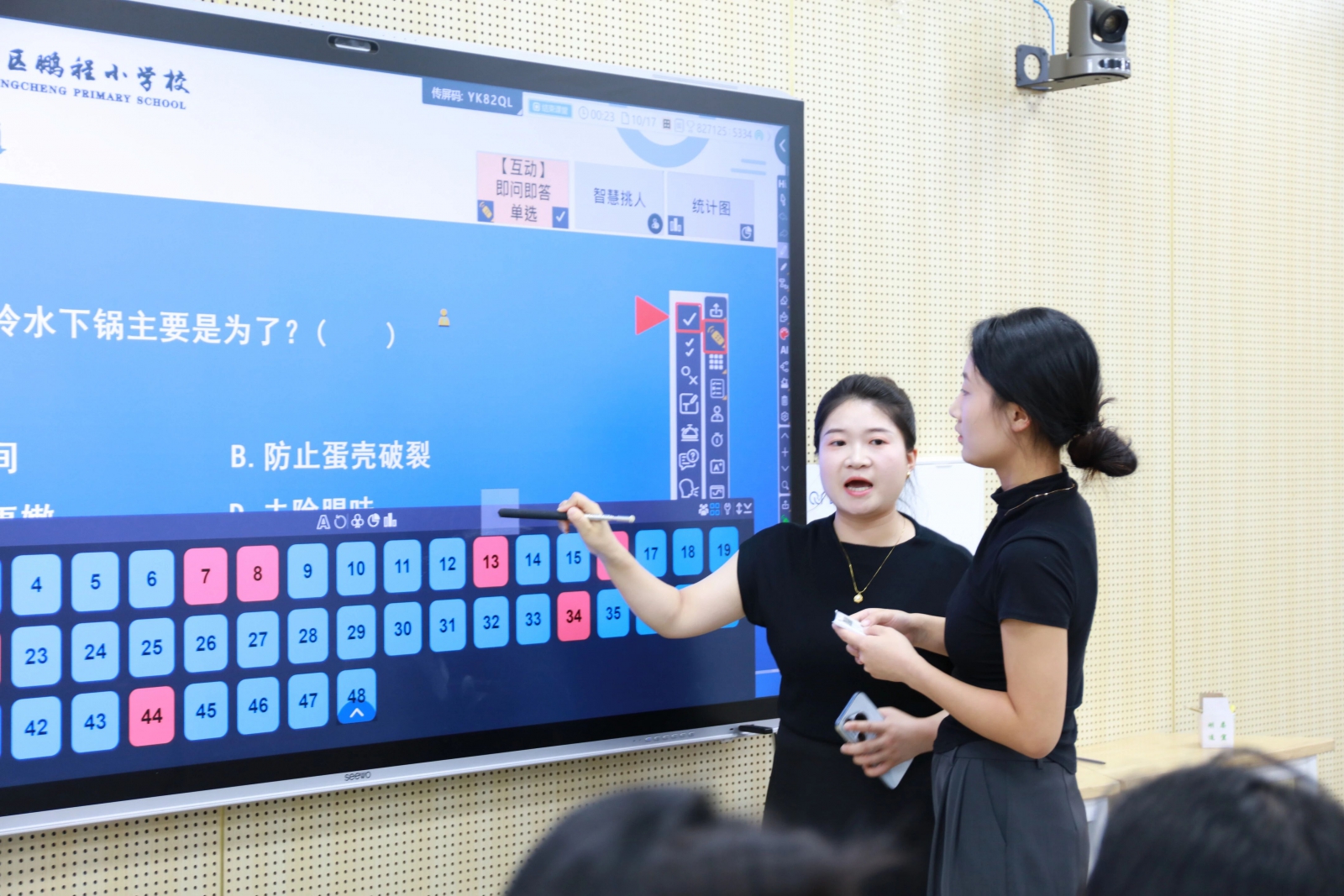 在課后,老師根據(jù)平臺(tái)反饋的情況,利用課后服務(wù)時(shí)間進(jìn)行個(gè)別輔導(dǎo)。家長也可以通過智慧教育平臺(tái)及時(shí)了解學(xué)生學(xué)習(xí)情況,收到老師推送的分層作業(yè)。引導(dǎo)孩子針對薄弱環(huán)節(jié)去回看視頻,及時(shí)補(bǔ)救,讓不同層次的學(xué)生有不同的提升。 2、團(tuán)隊(duì)研修引領(lǐng)成長