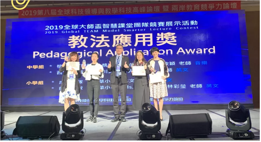 (五)2019第二屆全球大師杯智慧課堂展示及第八屆全球科技領(lǐng)導(dǎo)力與教學(xué)科技高峰論壇。2019年11月7日,芳草小學(xué)林文紅老師受邀加入成都聯(lián)隊(duì),參加在臺(tái)北市立蓬萊小學(xué)、靜修女中舉辦的第二屆全球大師杯智慧課堂團(tuán)隊(duì)競(jìng)賽展示活動(dòng),憑借芳草原創(chuàng)課程閱讀分享課獲得2019智慧課堂創(chuàng)新特等獎(jiǎng)和2019全球大師杯智慧課堂團(tuán)隊(duì)競(jìng)賽展示活動(dòng)教學(xué)應(yīng)用獎(jiǎng)。