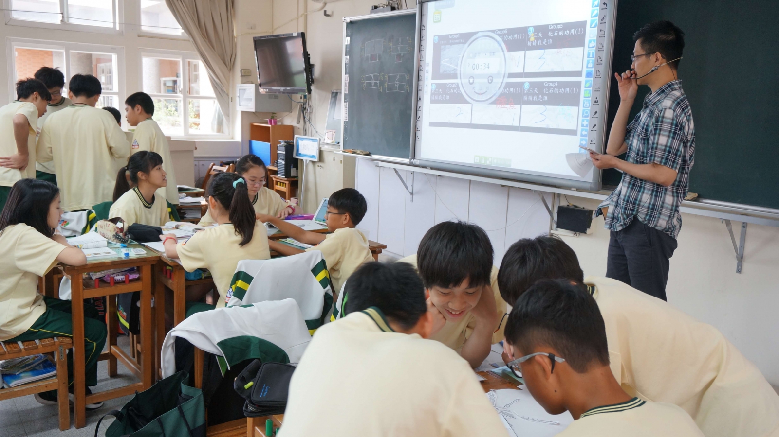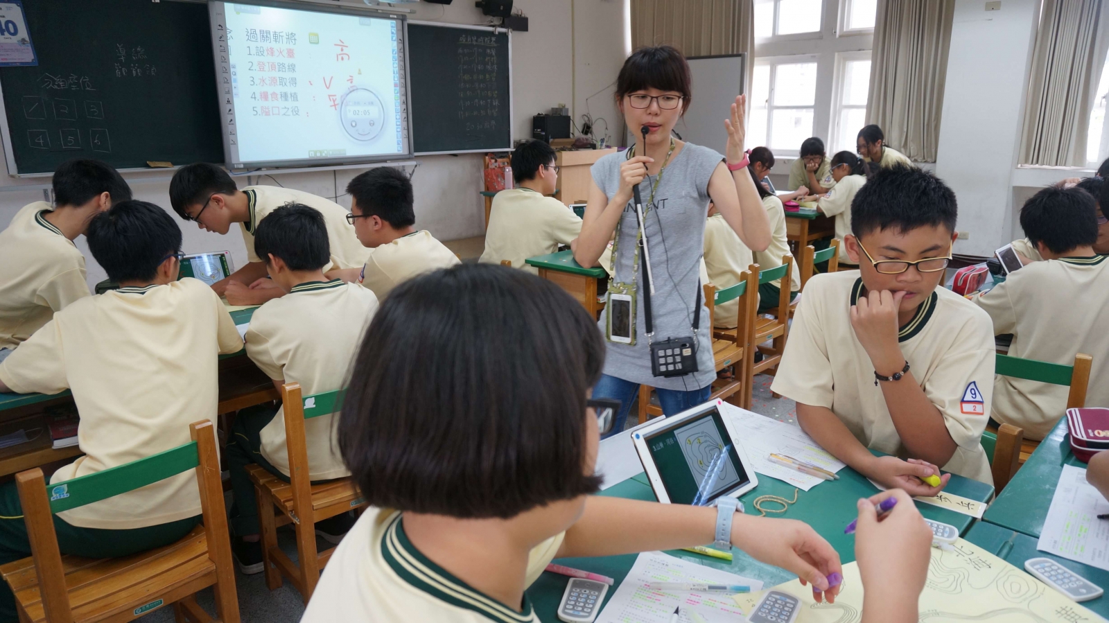 許純菁老師透過教室的電子白板,為九年級(jí)的童軍課設(shè)計(jì)出一堂密室逃脫課程