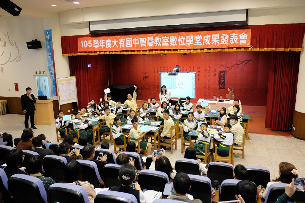 2017年4月桃園市智慧學(xué)堂成果發(fā)表會(huì)在大有國中舉辦,多位教師展示了智慧課堂公開課