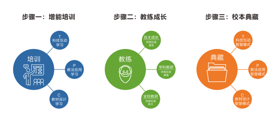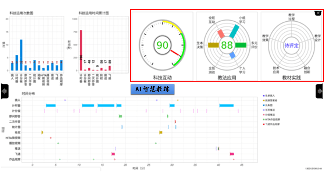 學(xué)校在錄播室完成之后完全導(dǎo)入醍摩豆智慧教學(xué)系統(tǒng),并采用AI人工智能蘇格拉底系統(tǒng),為每一位教師提供AI智慧教練,隨時提供教師專業(yè)成長反饋數(shù)據(jù)與精進指導(dǎo)。以李紅路主任提出的專業(yè)發(fā)展模式為途徑,用最短時間協(xié)助新進教師培訓(xùn)増能和教練成長,成功解決師生人數(shù)平衡之外,應(yīng)用蘇格拉底系統(tǒng)典藏資深教師智慧模式,建立校本課程體系。
