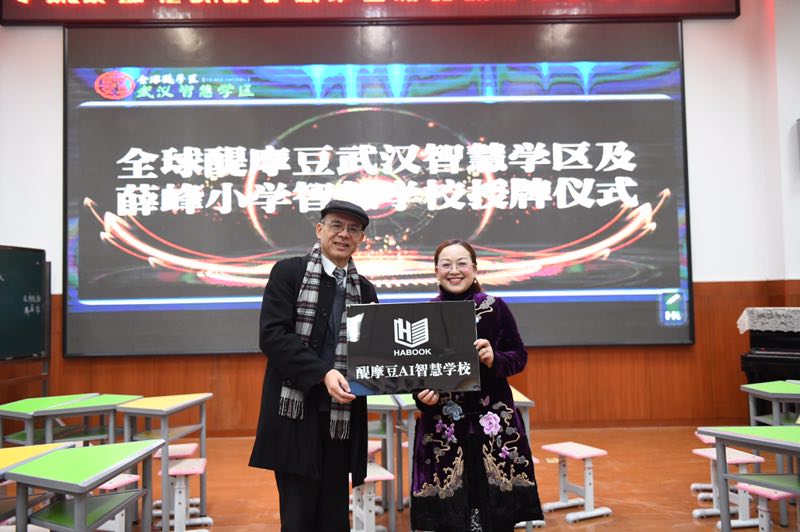 2018年12月25日,來自全球醍摩豆智慧教育研究院院長、醍摩豆信息技術(shù)有限公司董事長吳權(quán)威先生參加了全球醍摩豆智慧學(xué)區(qū)和智慧學(xué)校的授牌儀式。吳權(quán)威院長授予武漢醍摩豆學(xué)區(qū)聯(lián)盟為“醍摩豆智慧學(xué)區(qū)”,授予薛峰小學(xué)為“醍摩豆AI智慧學(xué)校”。薛峰小學(xué)謝翠玲校長向吳院長回贈了由學(xué)校教師原創(chuàng)的剪紙作品《揚帆起航》,寓意是醍摩豆種子在薛峰小學(xué)陽光教育的潤養(yǎng)下,必定快速的生根發(fā)芽,茁壯成長。