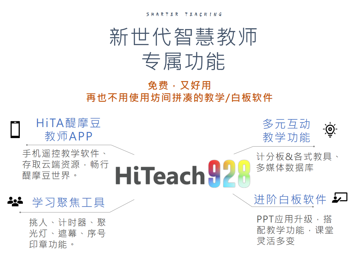 ※ 申明事項(xiàng):HiTeach 928是HiTeach 5的教育公益授權(quán),為醍摩豆公益推廣智慧教育之用,歡迎所有教師下載使用。