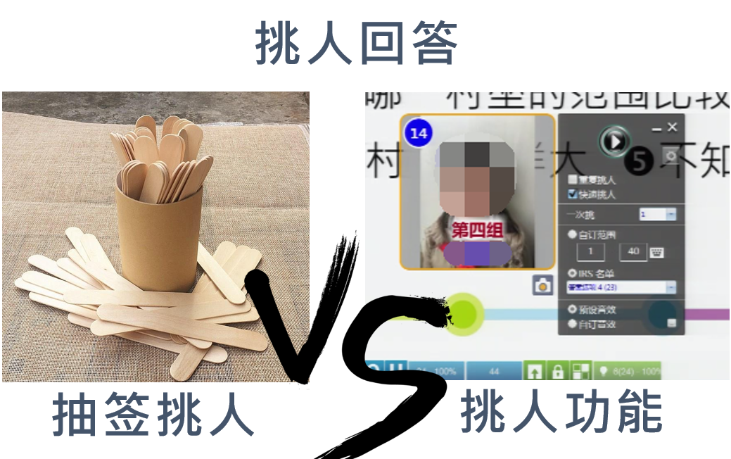 挑人 關(guān)注每位學(xué)生 課堂中的挑人功能,系統(tǒng)可根據(jù)名單隨機(jī)挑人。