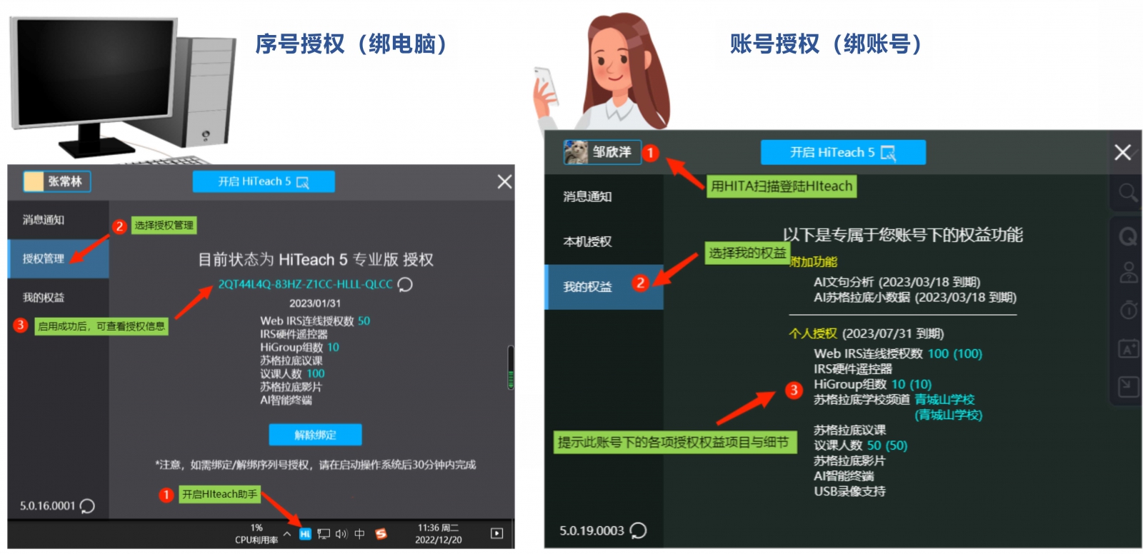 查詢HiTeach授權(quán)信息的方法,請(qǐng)參考下圖的步驟: