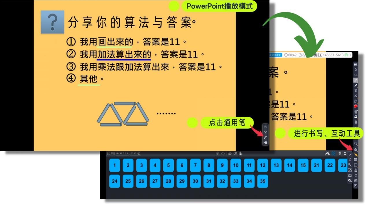 小提示:HiTeach編輯模式與互動模式的區(qū)別,在于是否點選開始課堂鈕,只要沒有點選開始課堂鈕,就是備課編輯教材模式。(不會出現(xiàn)推送、IRS互動、任務(wù)、測驗等互動教學功能按鈕。)