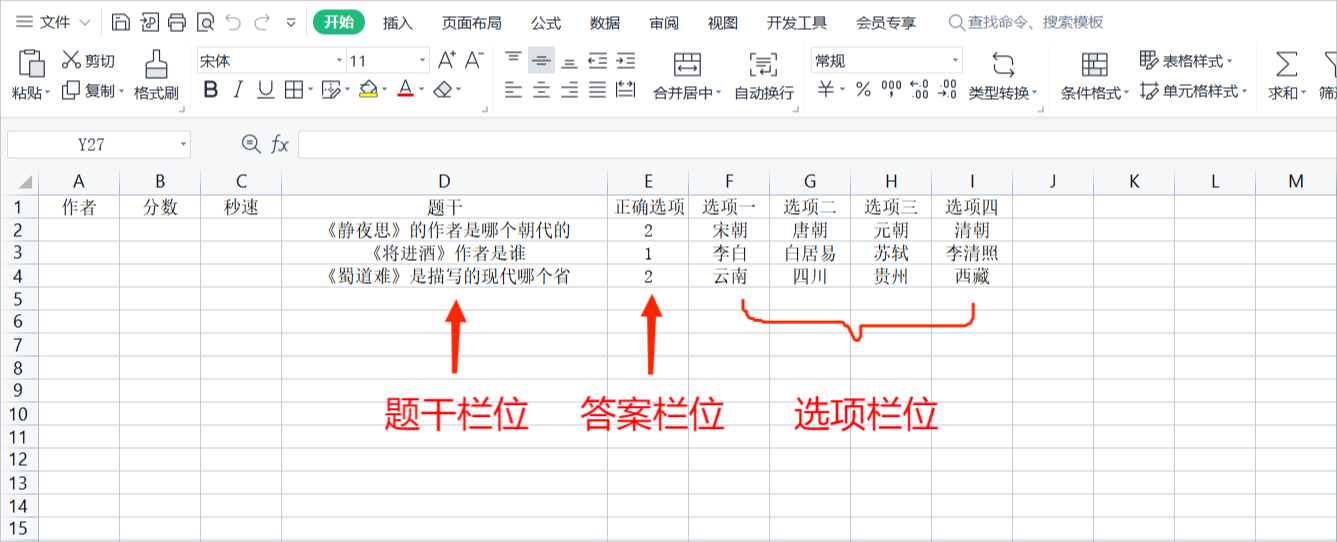 只要依序復(fù)制、貼上試題的的內(nèi)容到范例檔指定的題干欄位、正確選項(xiàng)(答案)欄位、選項(xiàng)欄位,其它欄位則是選填(可不填),編輯完成并存檔之后,即可利用前述相同的方式,應(yīng)用于Excel隨堂測(cè)驗(yàn)。