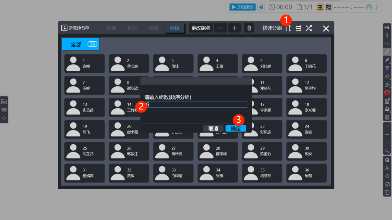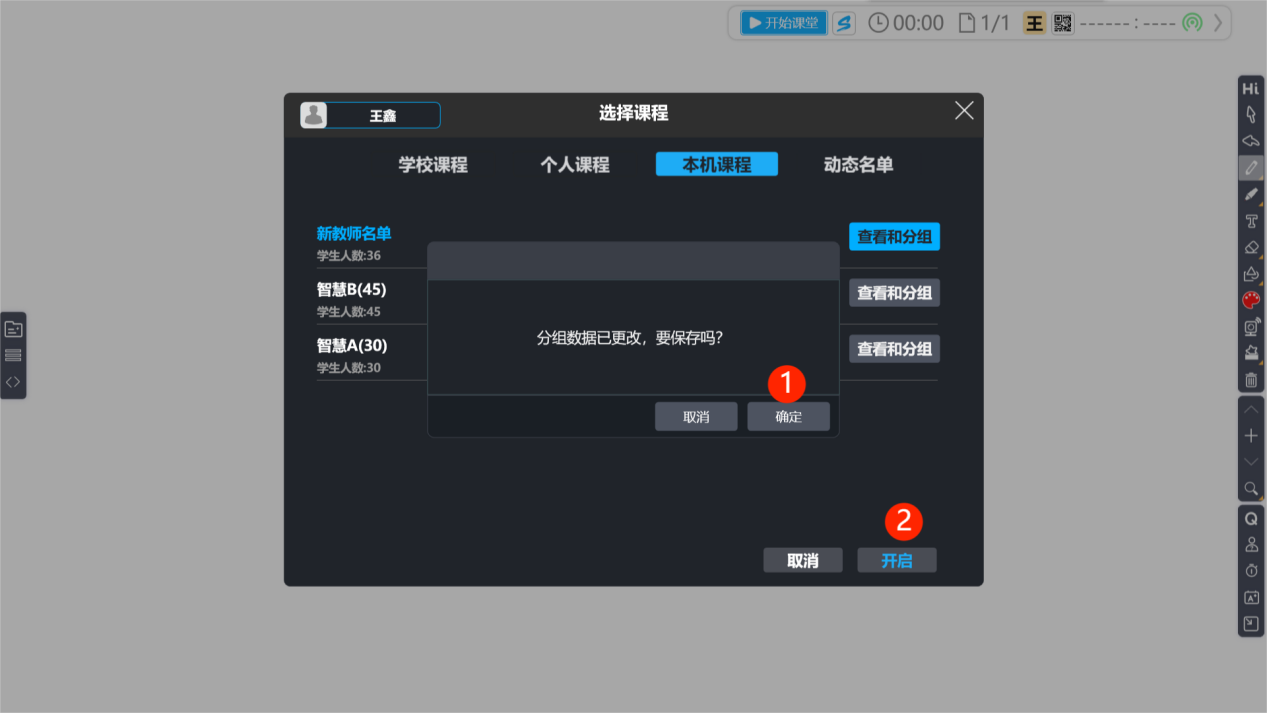 步驟4. 完成分組關(guān)閉窗口后,若有變更會出現(xiàn)提示窗口,請您點(diǎn)擊 “確定” 后,再點(diǎn)擊 “開啟” 即可使用分好組的名單進(jìn)行課堂應(yīng)用。