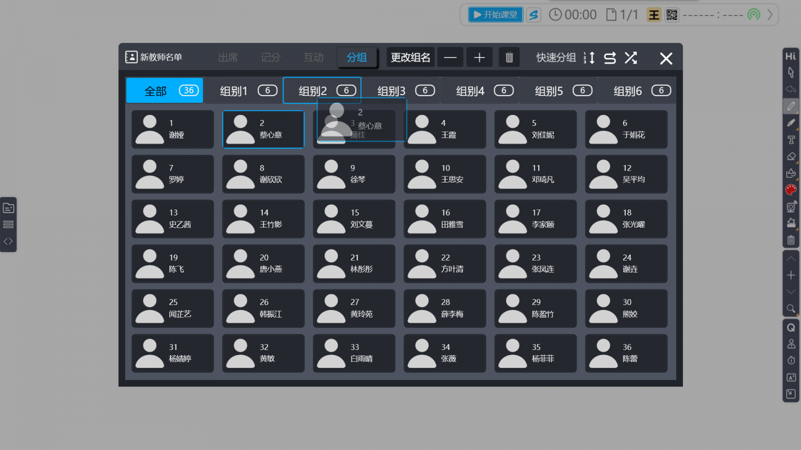 步驟3.完成分組后,若您仍需調(diào)整,您可使用點(diǎn)擊拖曳的方式將學(xué)生拖曳到您想要的分組內(nèi)進(jìn)行快速調(diào)整。