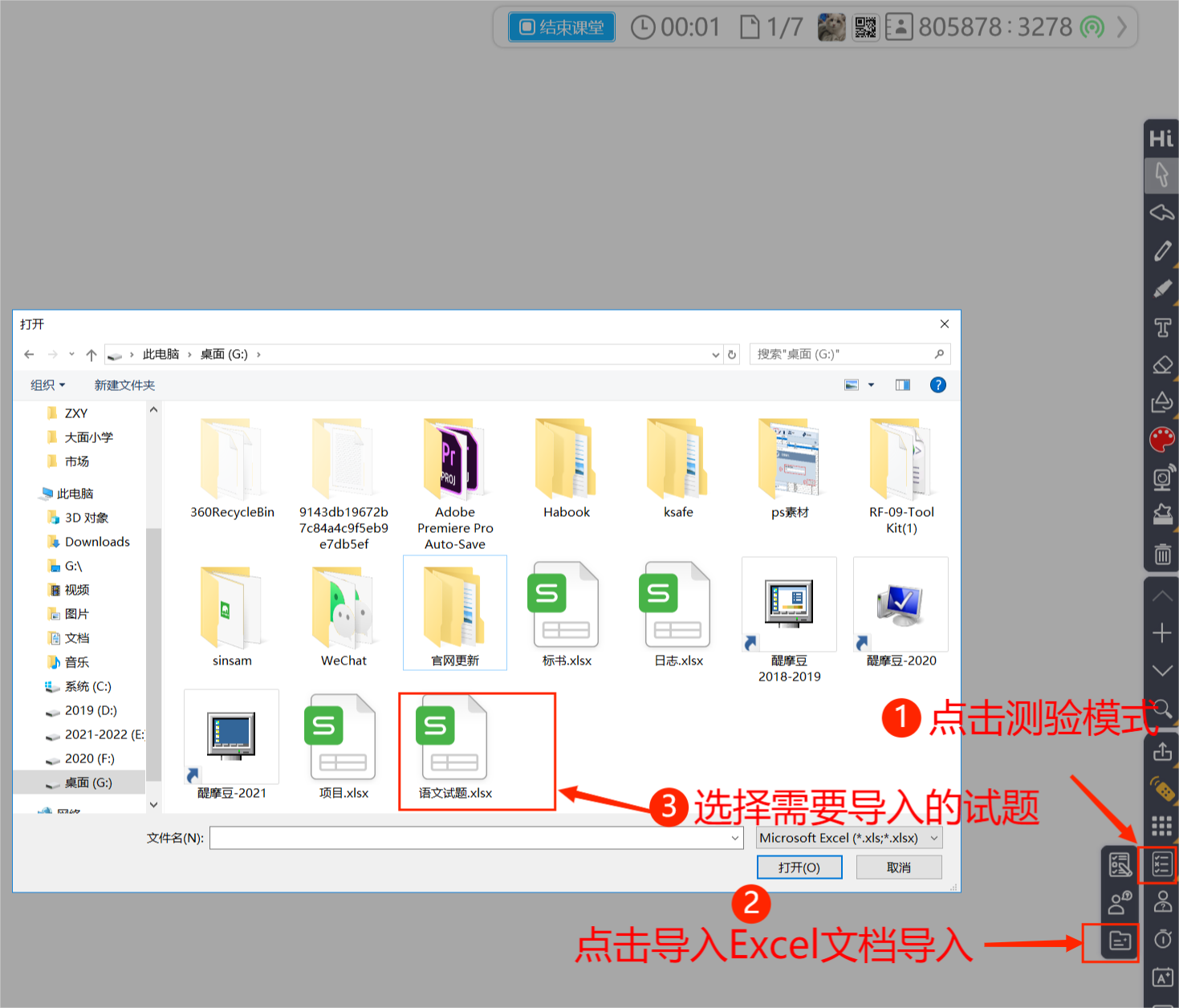 準(zhǔn)備好試卷Excel檔之后,在HiTeach中進(jìn)行隨堂測(cè)驗(yàn)的操作步驟如下: