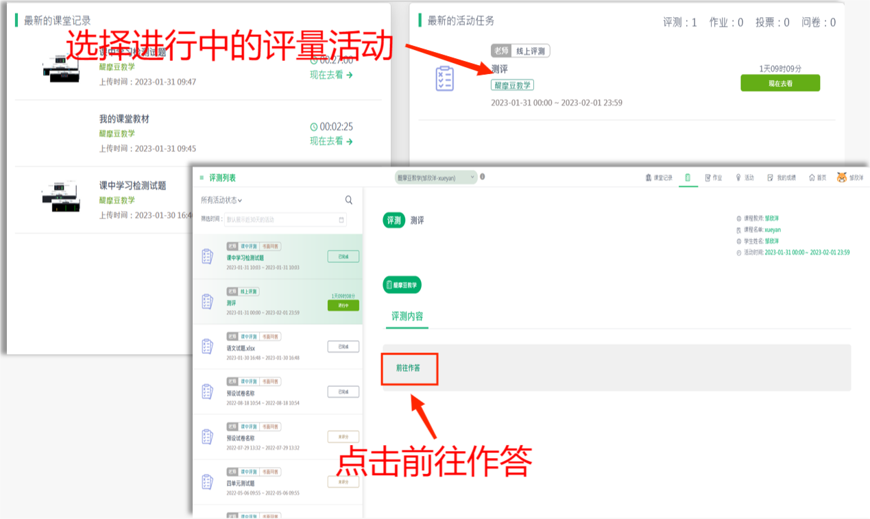 步驟2:登入平臺(tái)后,選擇進(jìn)行中的評(píng)量活動(dòng)活動(dòng),再選擇前往作答。