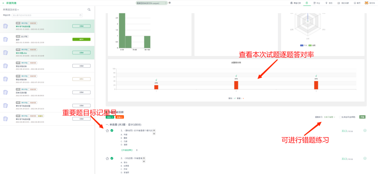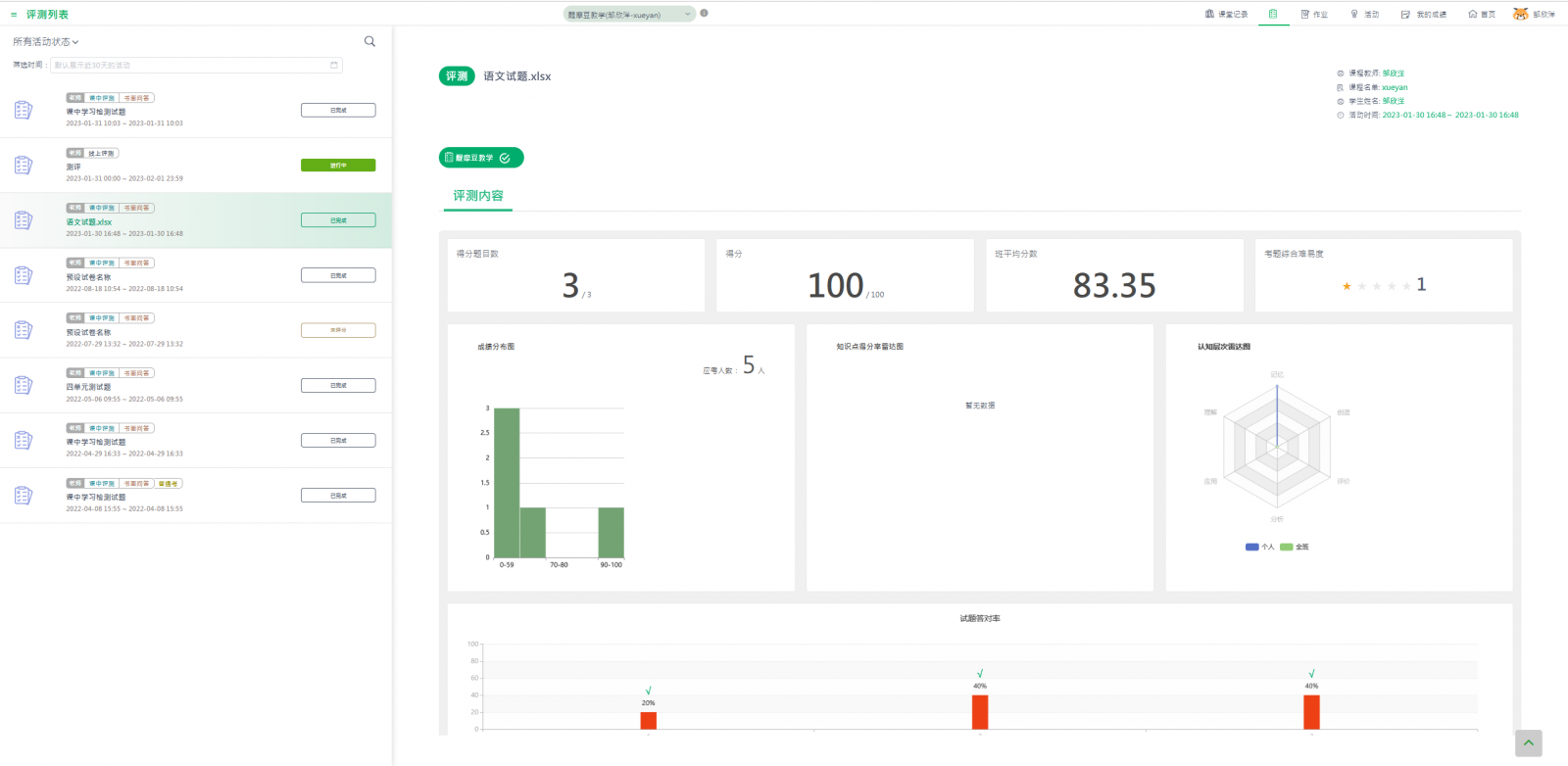 當(dāng)教師完成批閱試卷后,學(xué)生端登入AClass ONE之后,就會(huì)顯示評(píng)量結(jié)果的數(shù)據(jù)報(bào)告。