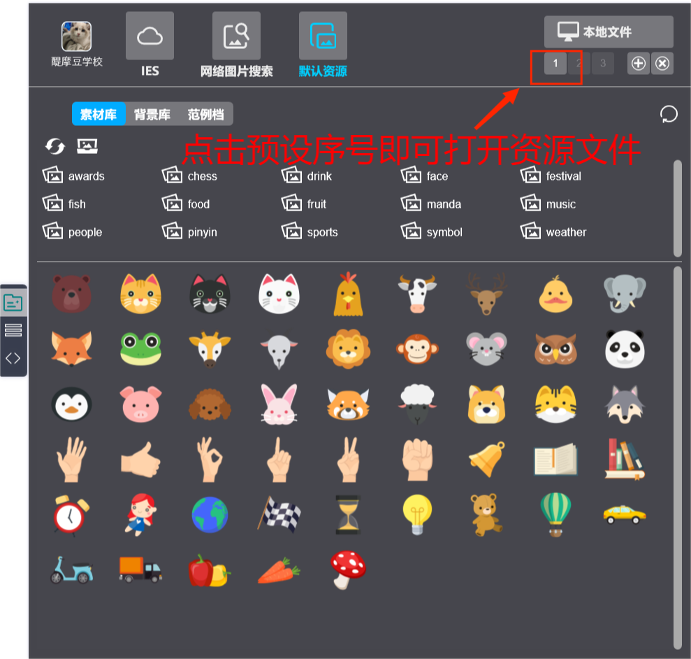 HiTeach提供相當(dāng)多的內(nèi)建資源及素材庫,也內(nèi)建了網(wǎng)絡(luò)圖片搜尋引擎,便于將素材應(yīng)用于教學(xué)活動(dòng)。但是,通常素材永遠(yuǎn)都是不夠的,也不一定符合各學(xué)科、各單元的教學(xué)需求,因此,老師們大都會有自己備課的教材檔案、多媒體素材,這時(shí)候,利用HiTeach自訂資源資料夾的功能,就可以快速取得自己的教學(xué)材料。